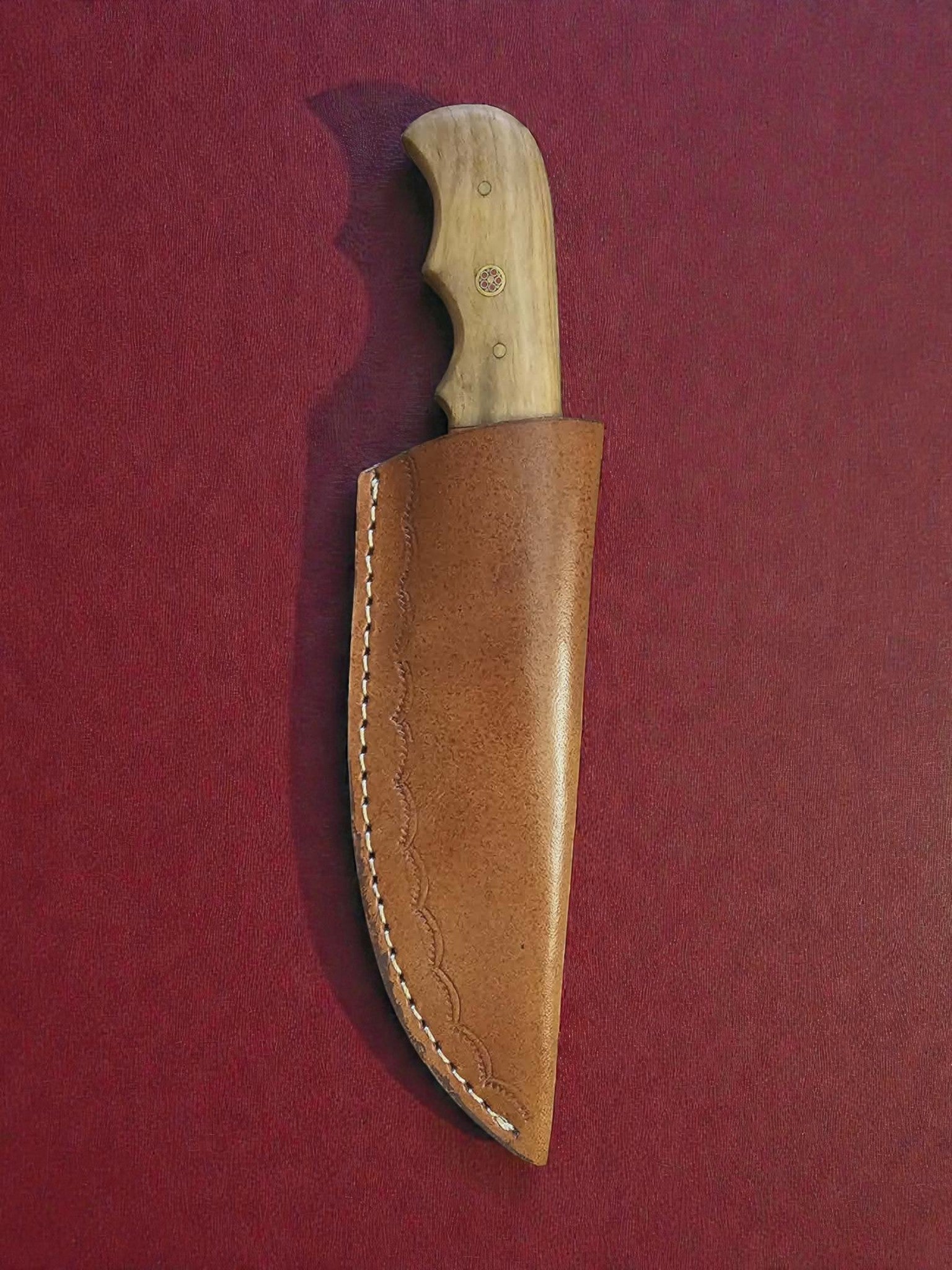 Ένα στιβαρό χειροποίητο μαχαίρι με φυσική λαβή από ξύλο ελιάς, σχεδιασμένο για αντοχή, ισορροπία και πρακτική χρήση, με τον αυθεντικό χαρακτήρα της χειροποίητης κατασκευής.
