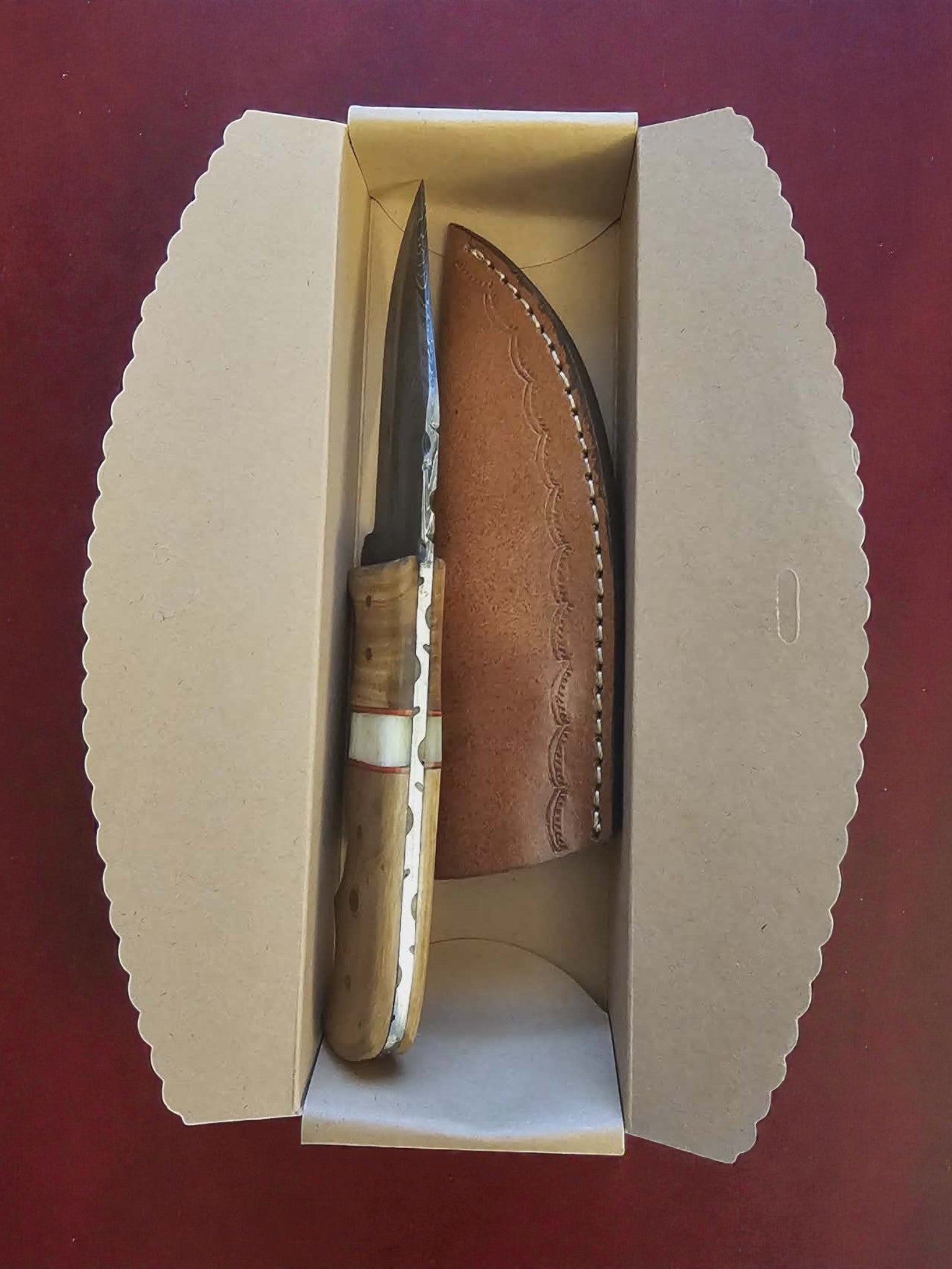R004 - Χειροποίητο Skinner από Δαμασκηνό ατσάλι - Ξύλο ελιάς & Κόκκαλο καμήλας
