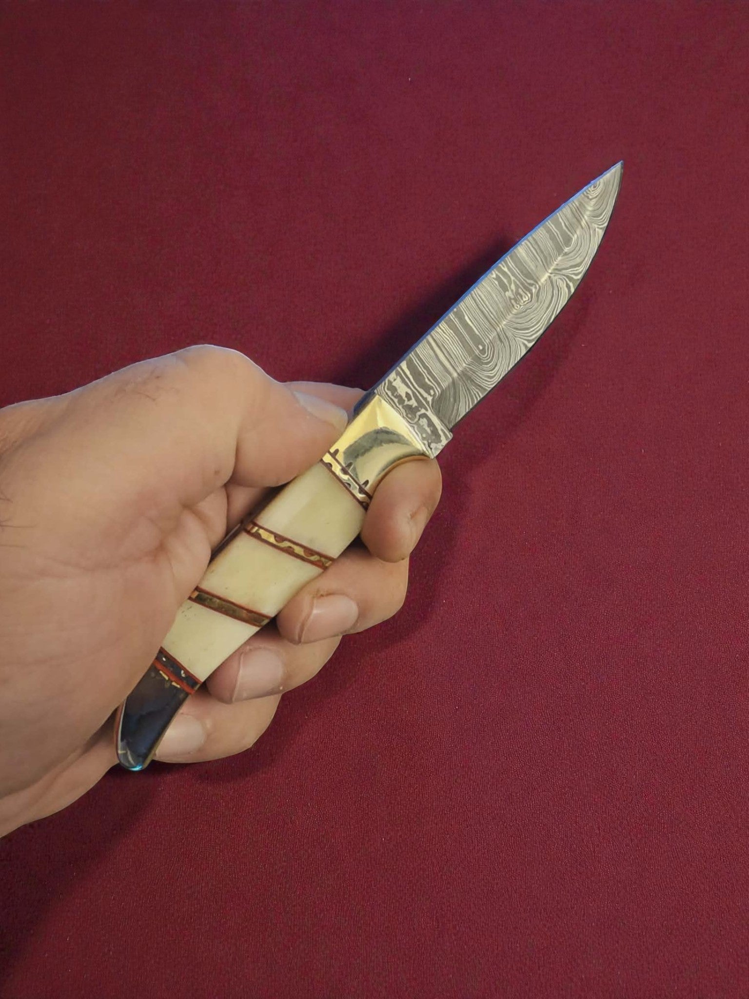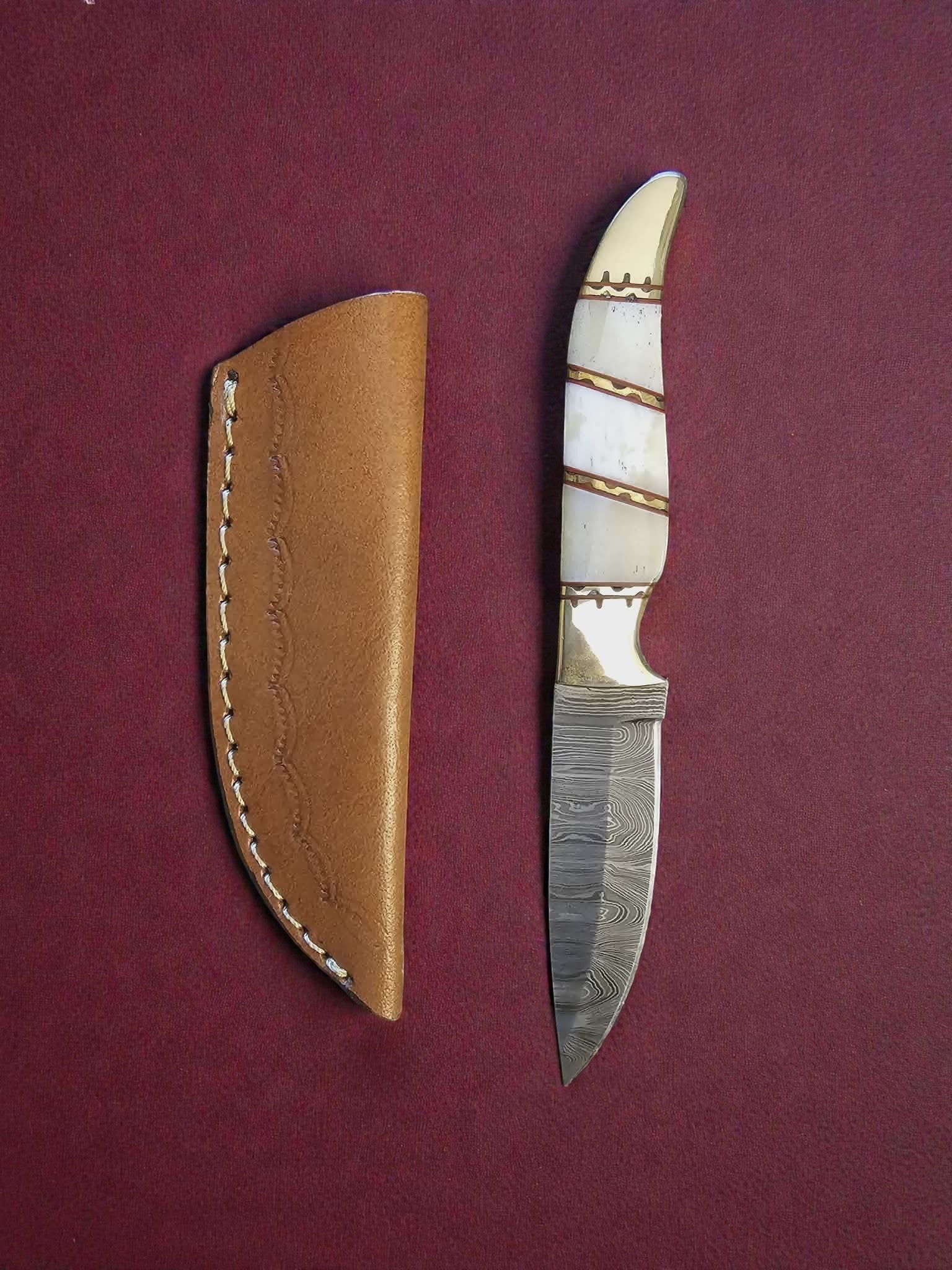 R017 - Χειροποίητο Mini Hunting Knife από Δαμασκηνό ατσάλι & Κόκκαλο καμήλας
