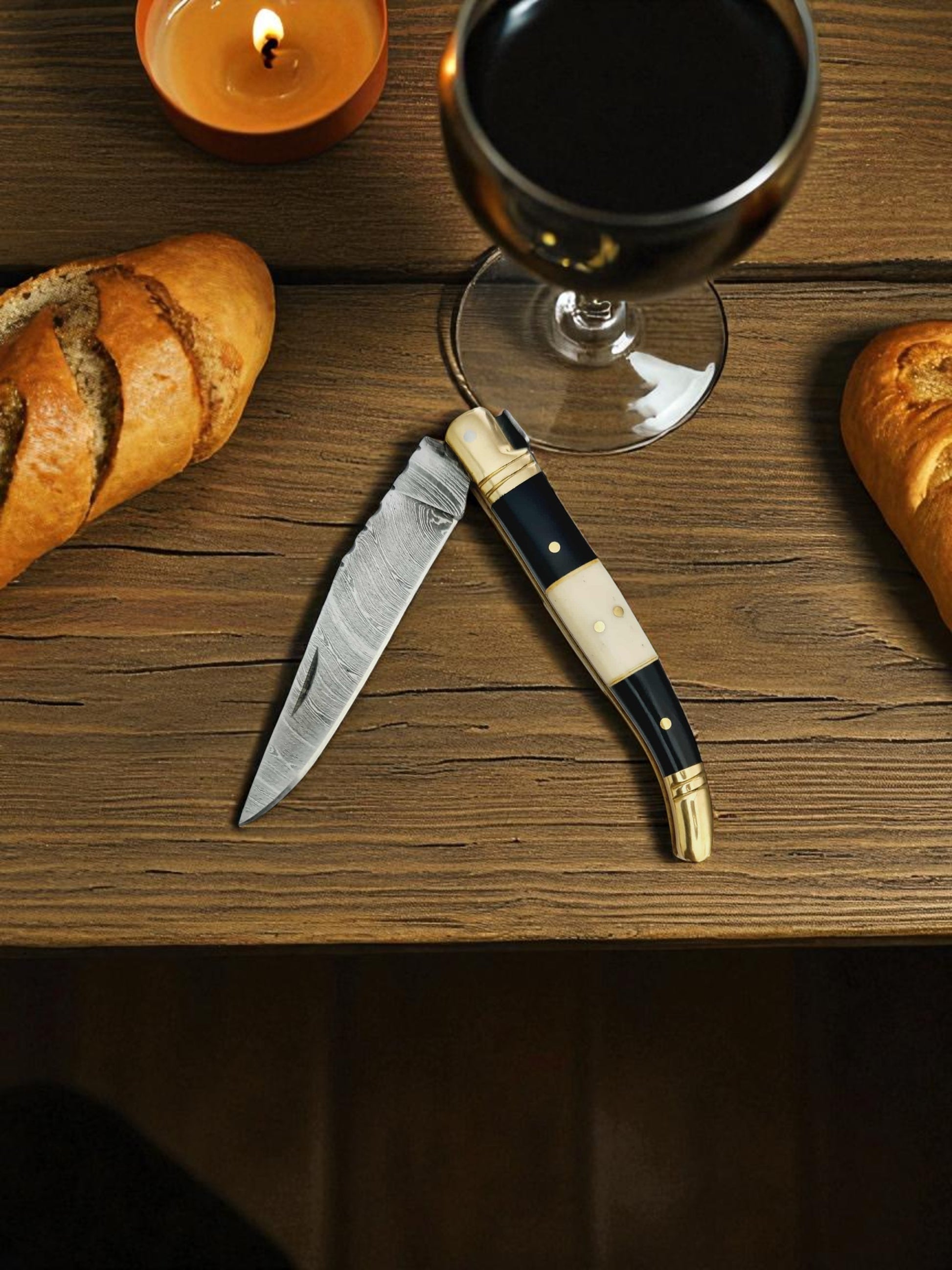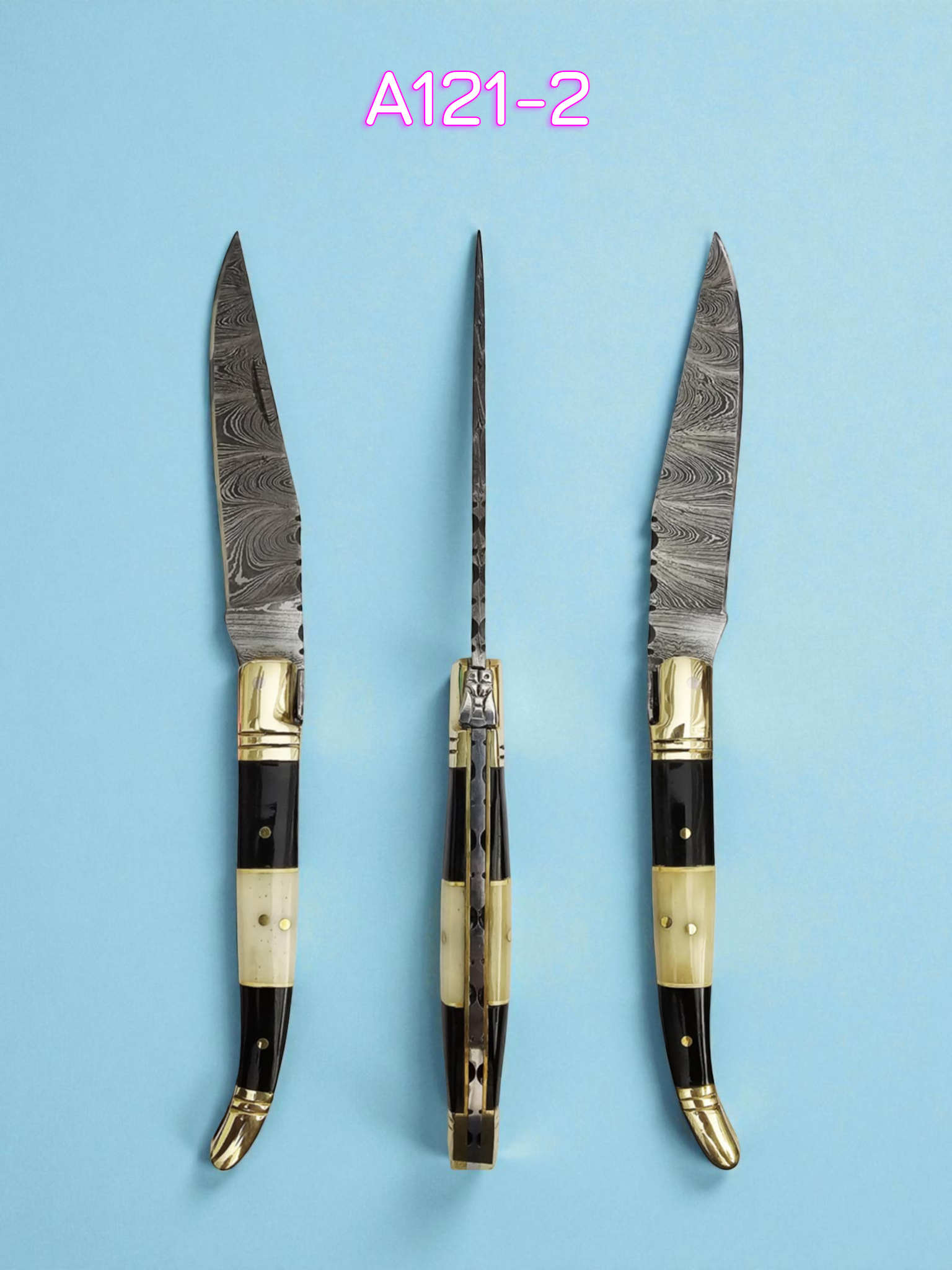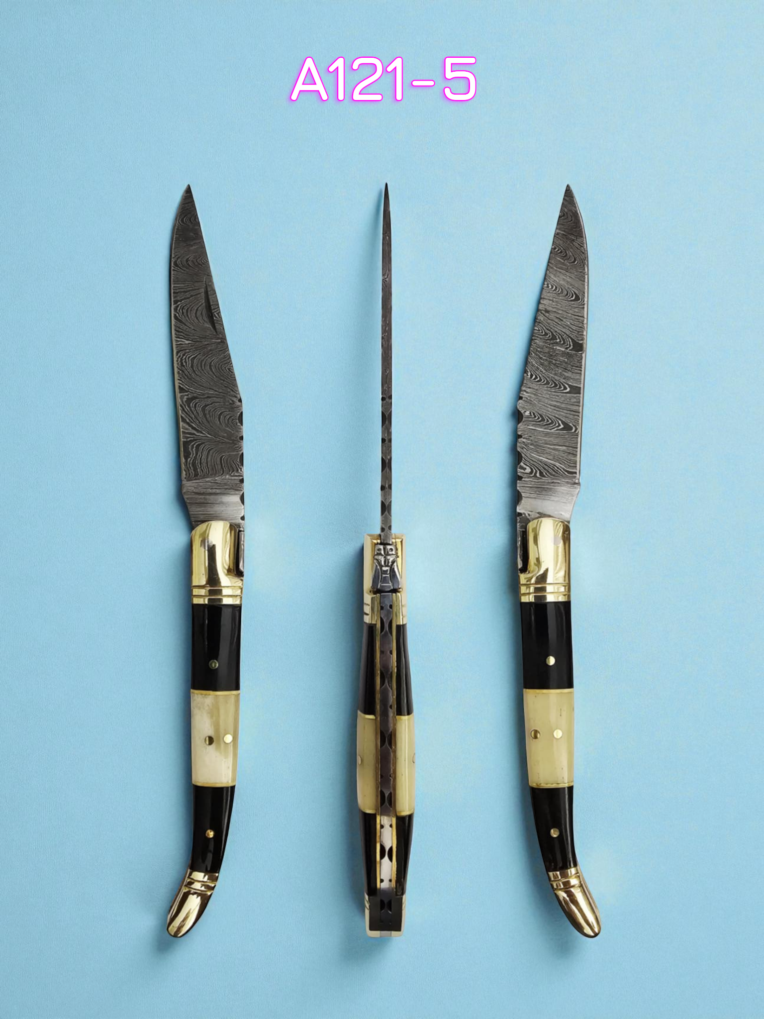 A121 Handmade Laguiole Classique - Damascus Steel - Buffalo Horn & Camel Bone