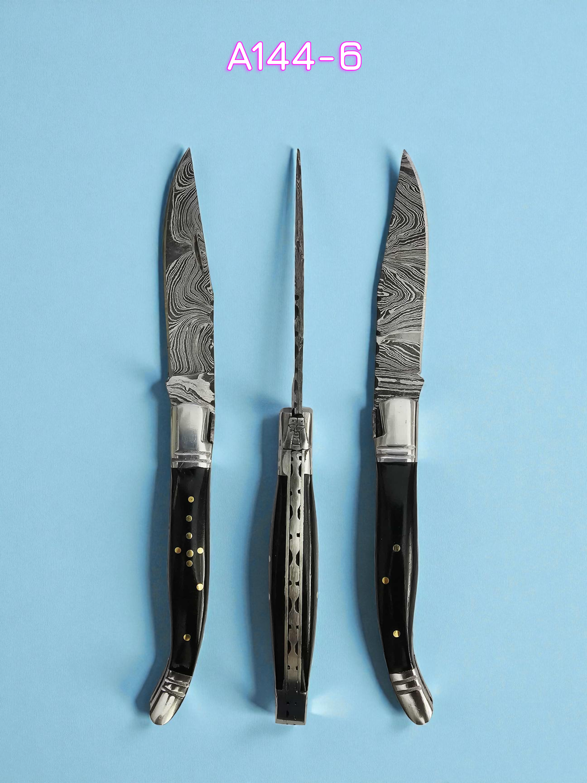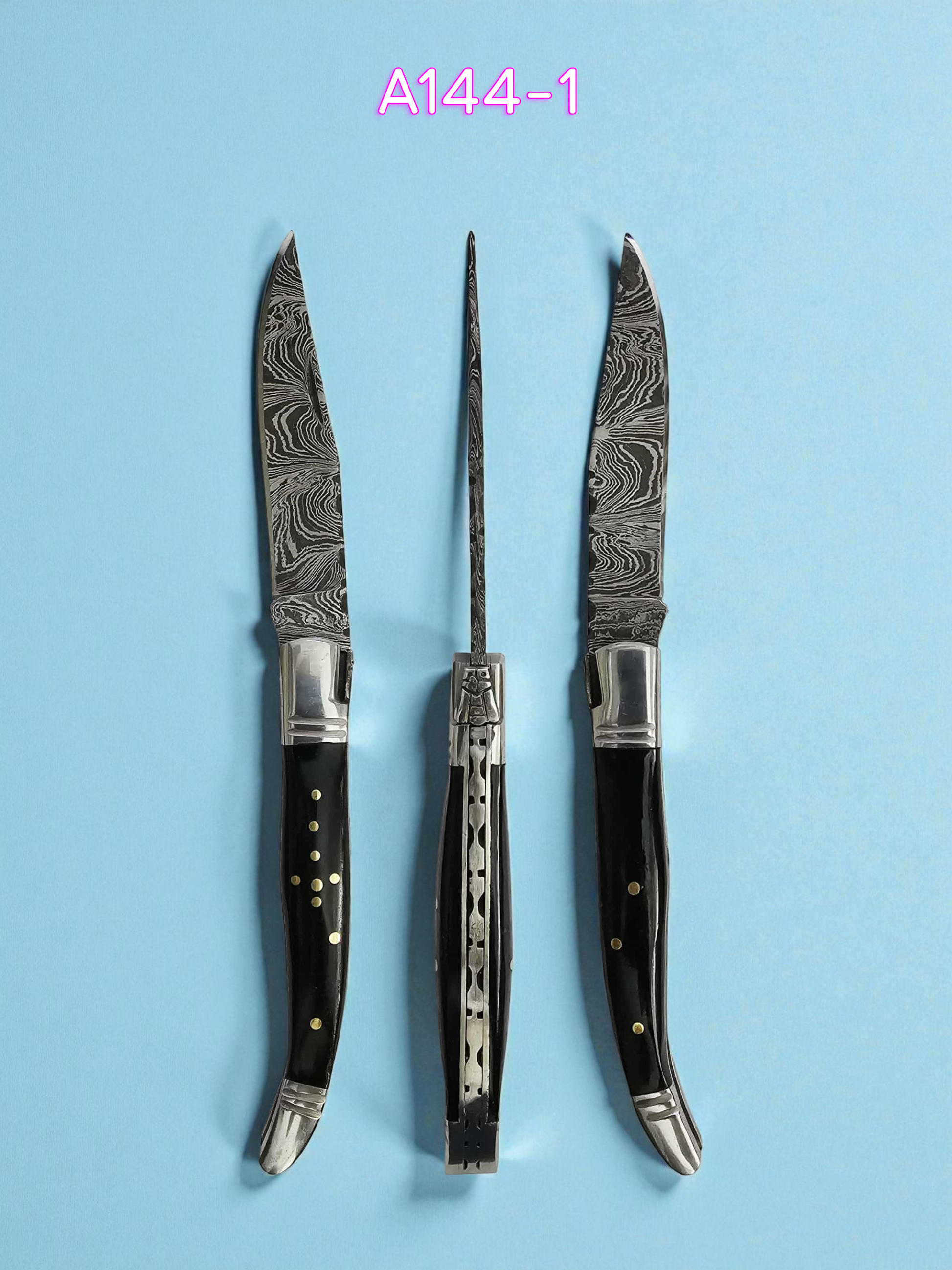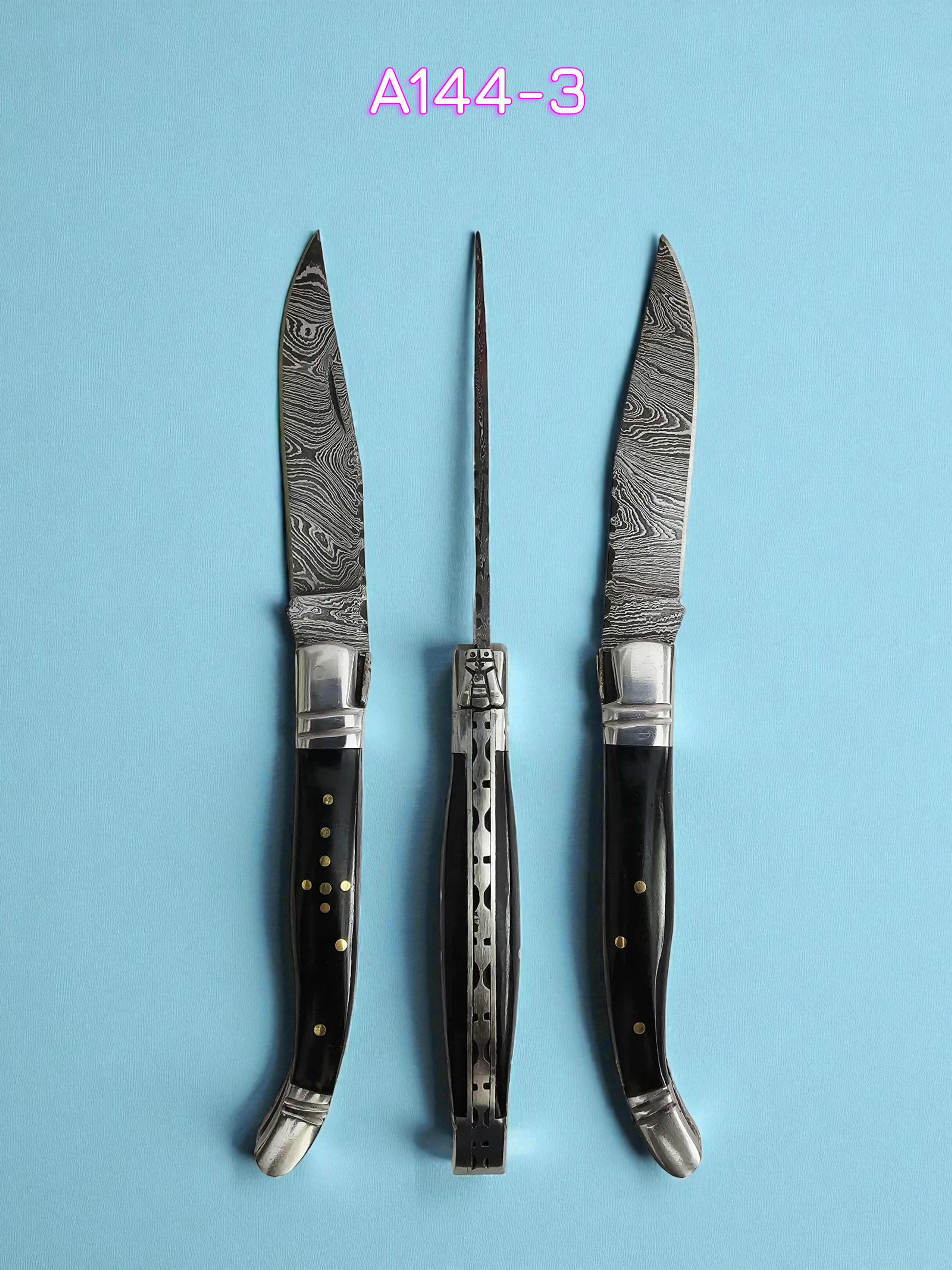 A144 Handmade Laguiole Rustique - Damascus Steel & Buffalo Horn