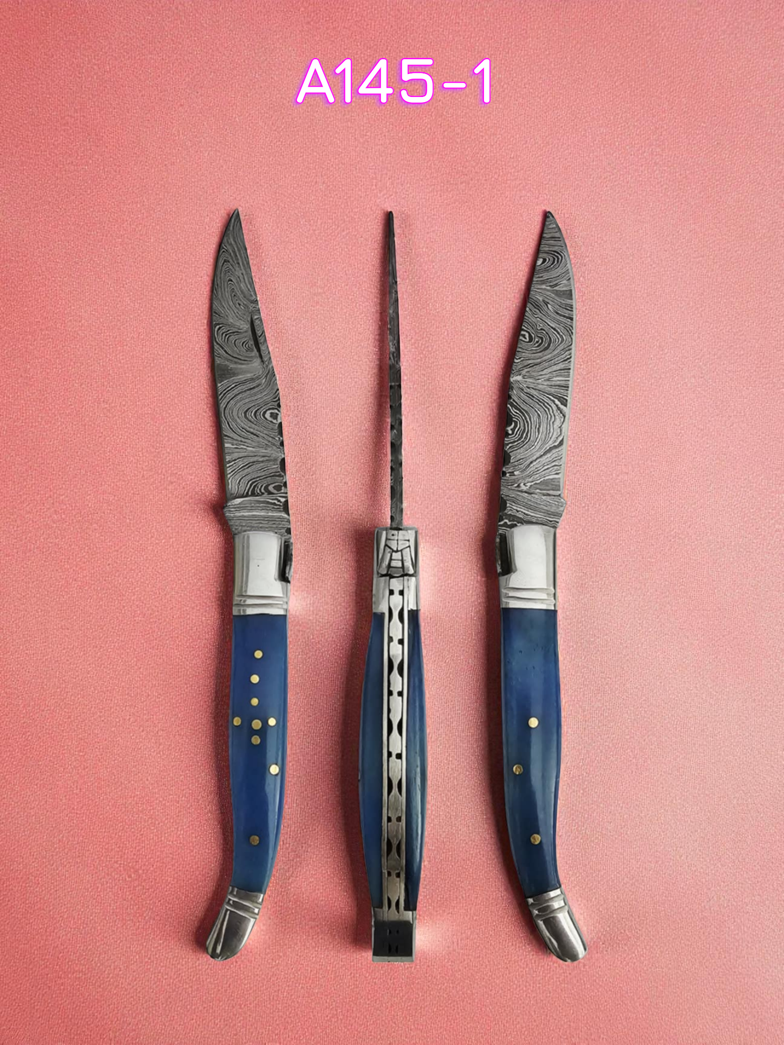 A145 Handmade Laguiole Rustique - Damascus Steel & Resin-Infused Camel Bone