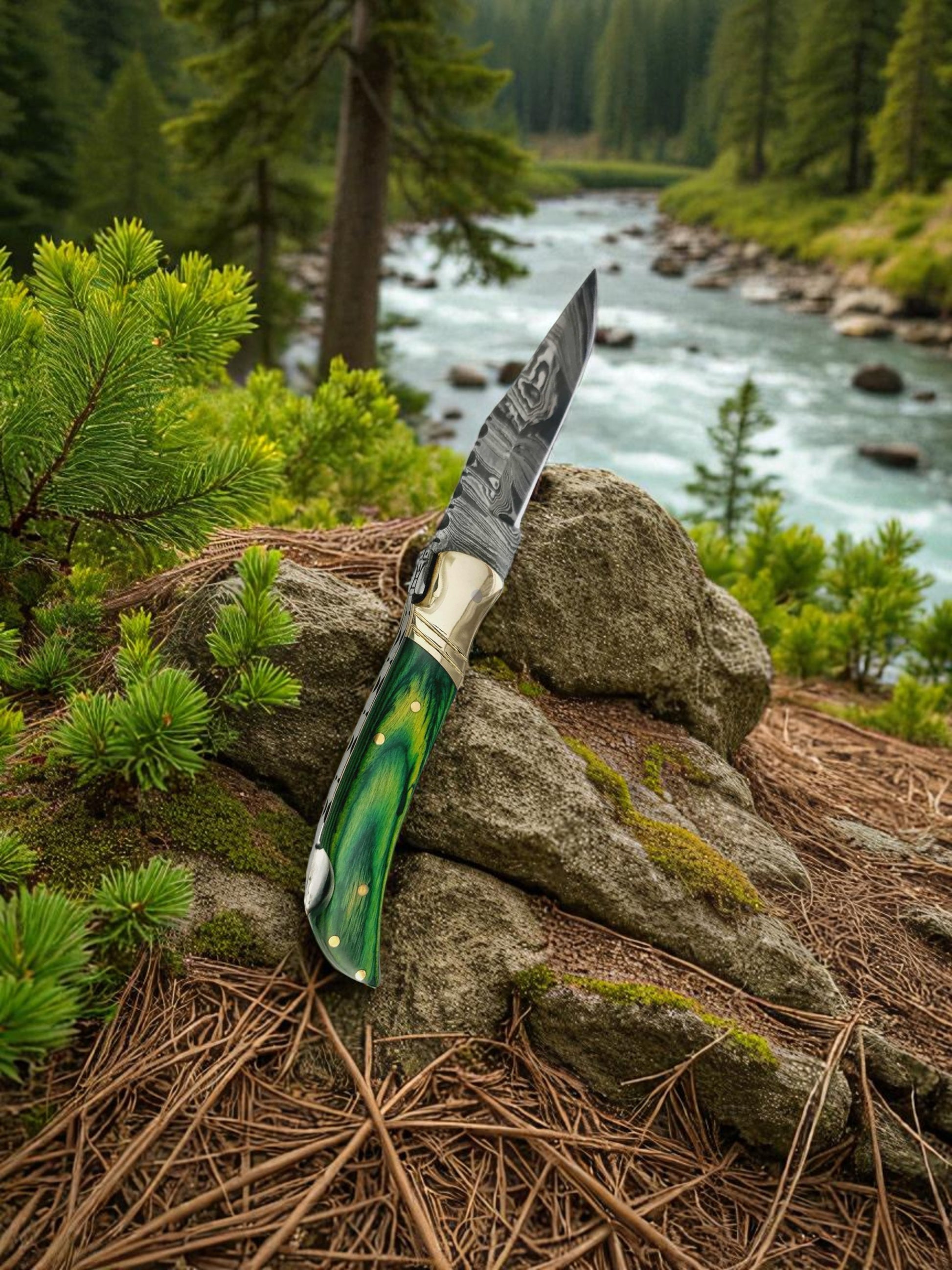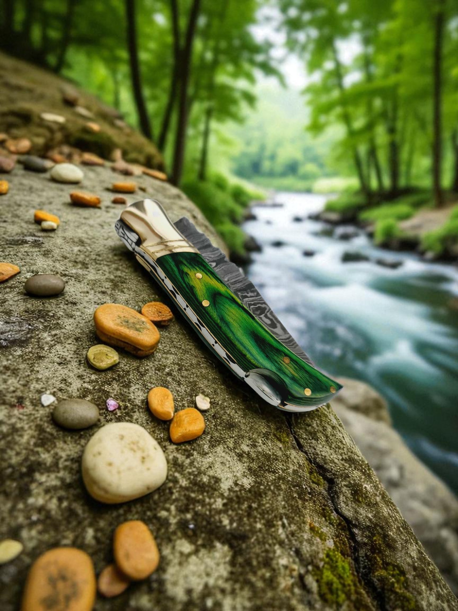 A154 Handmade Pocket Laguiole – Damascus Steel & Stabilized Wood with Resin