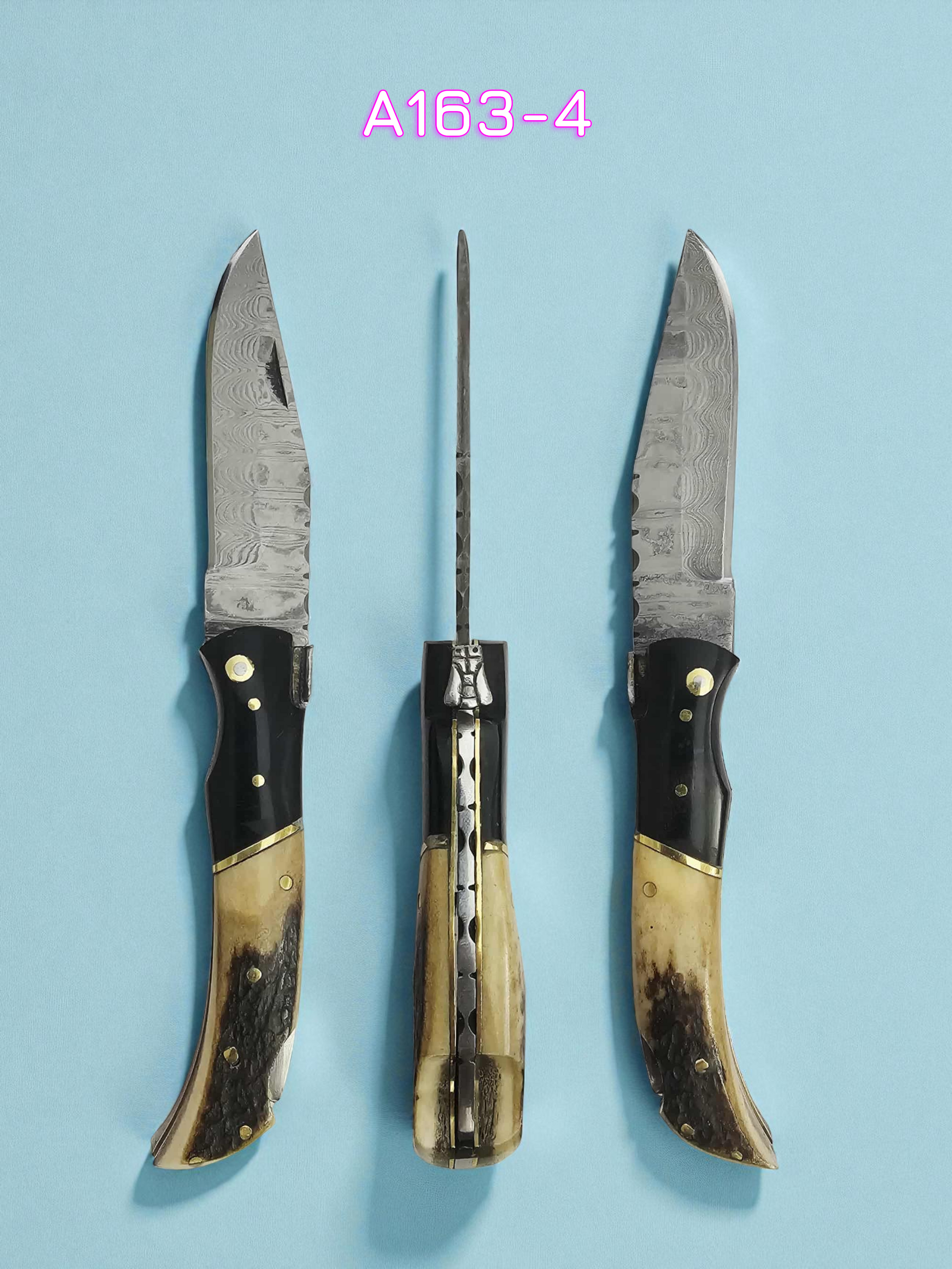 A163 Handmade Laguiole Élite - New-Gen Damascus Steel - Buffalo Horn & Red Deer Antler