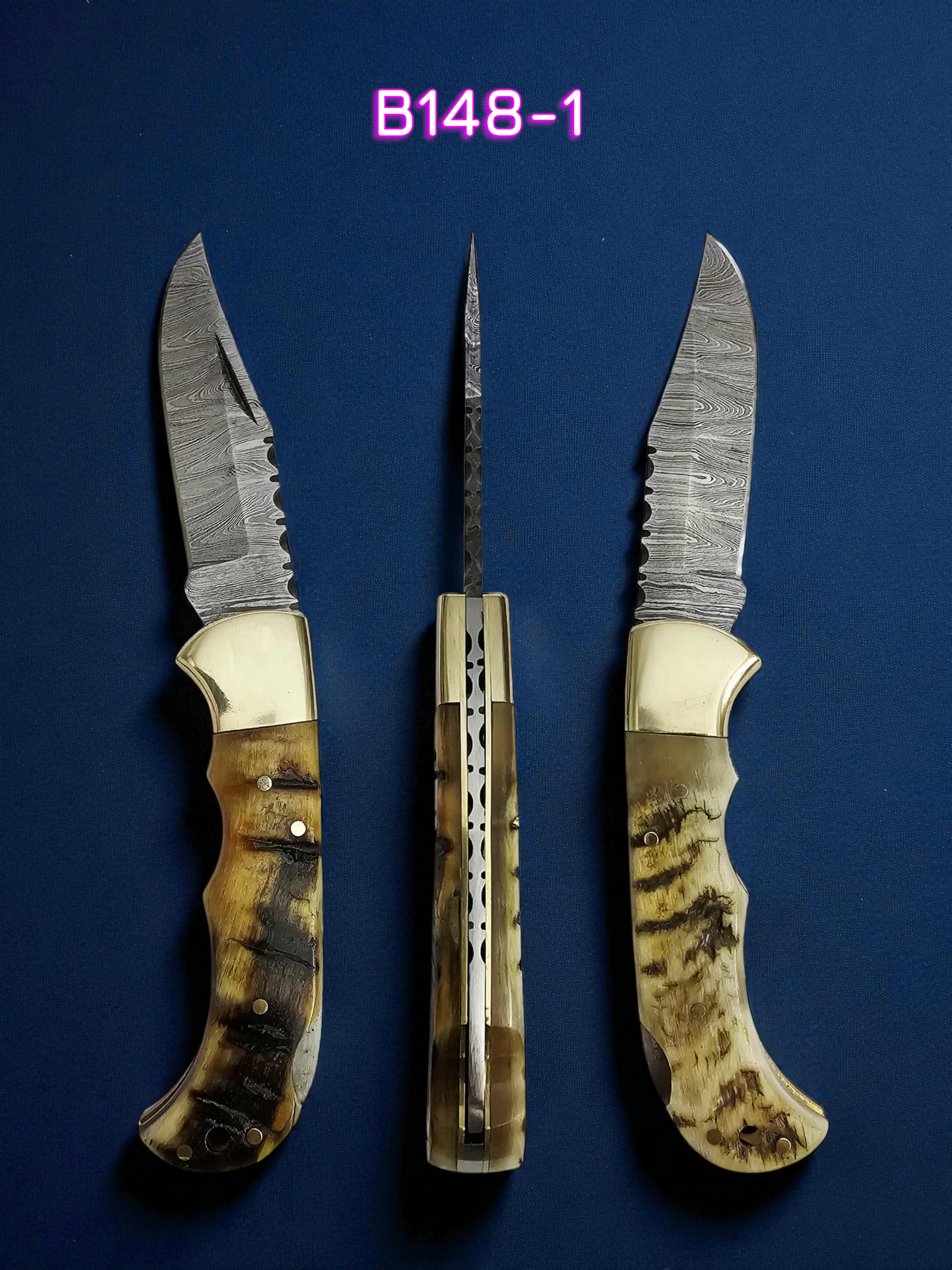 B148 Handmade Pocket Knife – Damascus Steel & Ram Horn