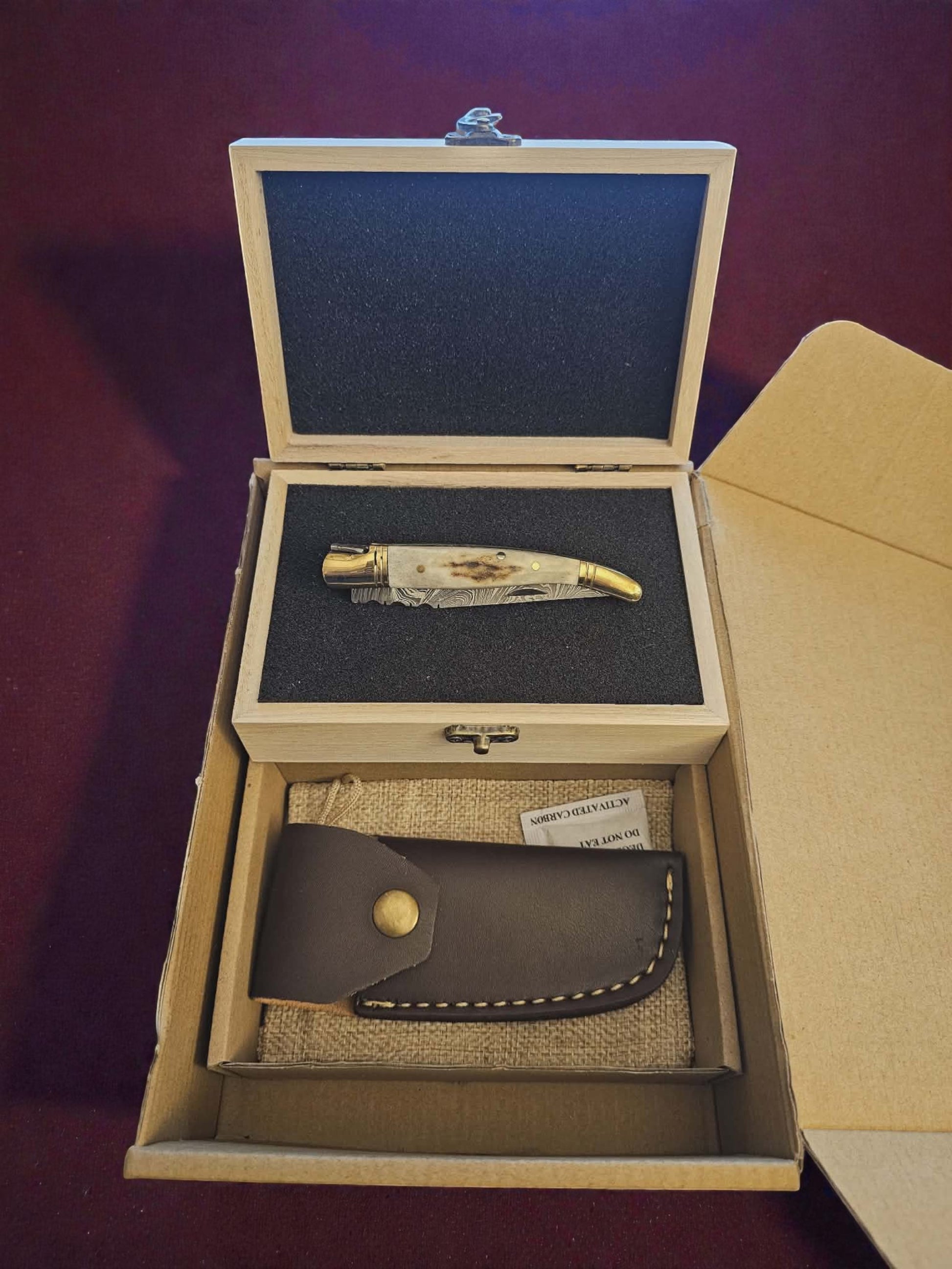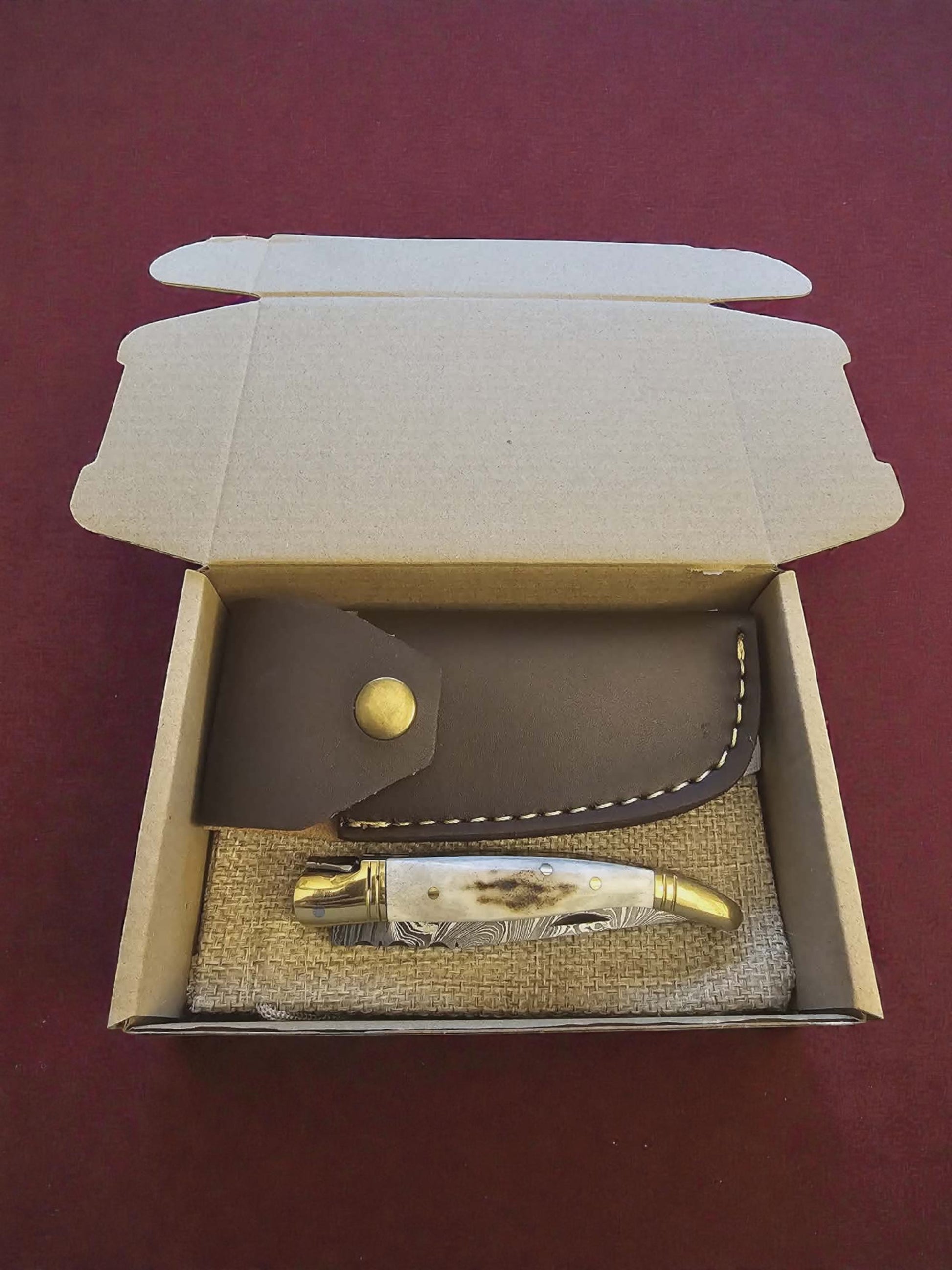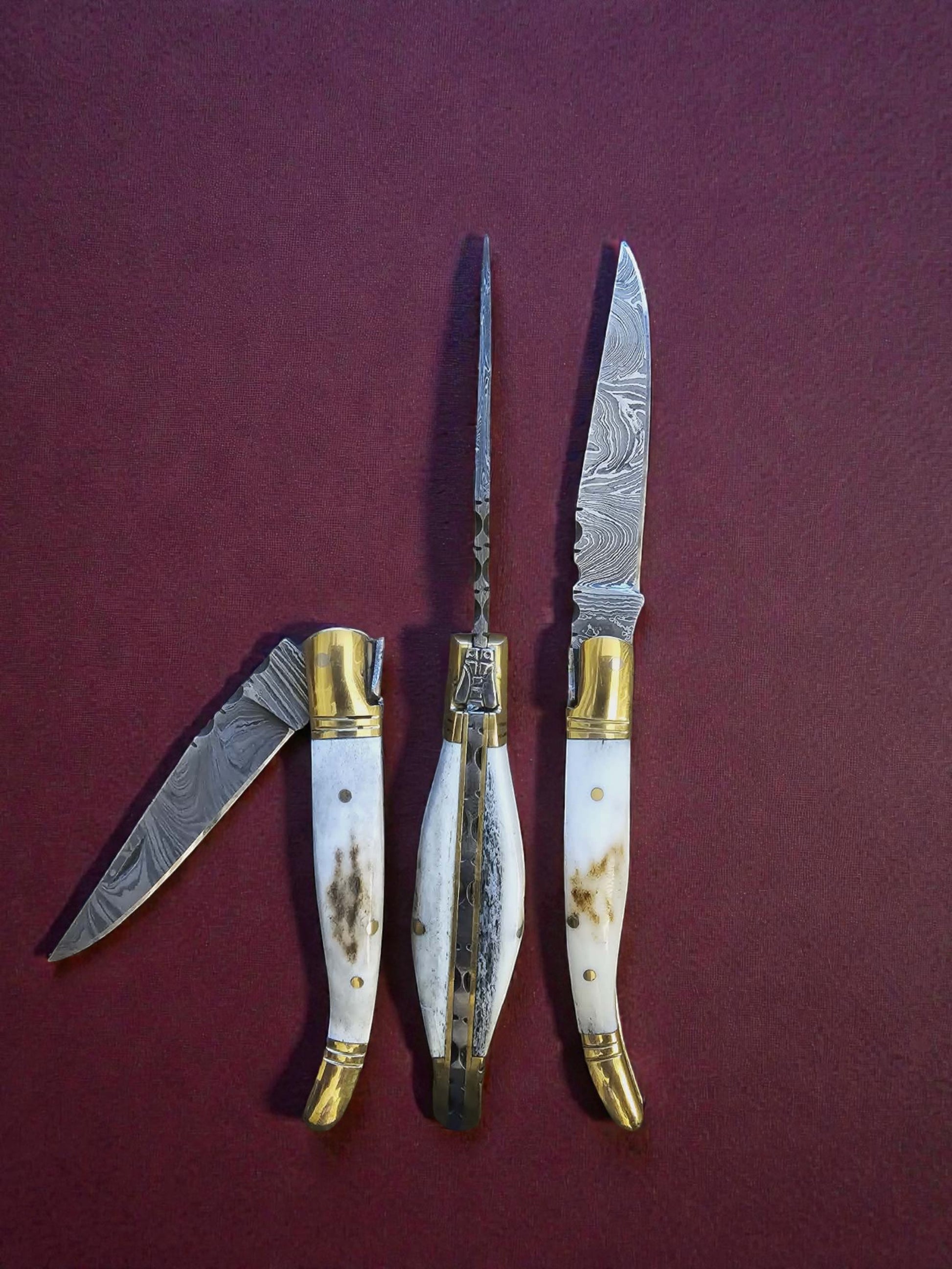 F006 - Χειροποίητο Laguiole Petit από Δαμασκηνό Ατσάλι & κέρατο ελαφιού