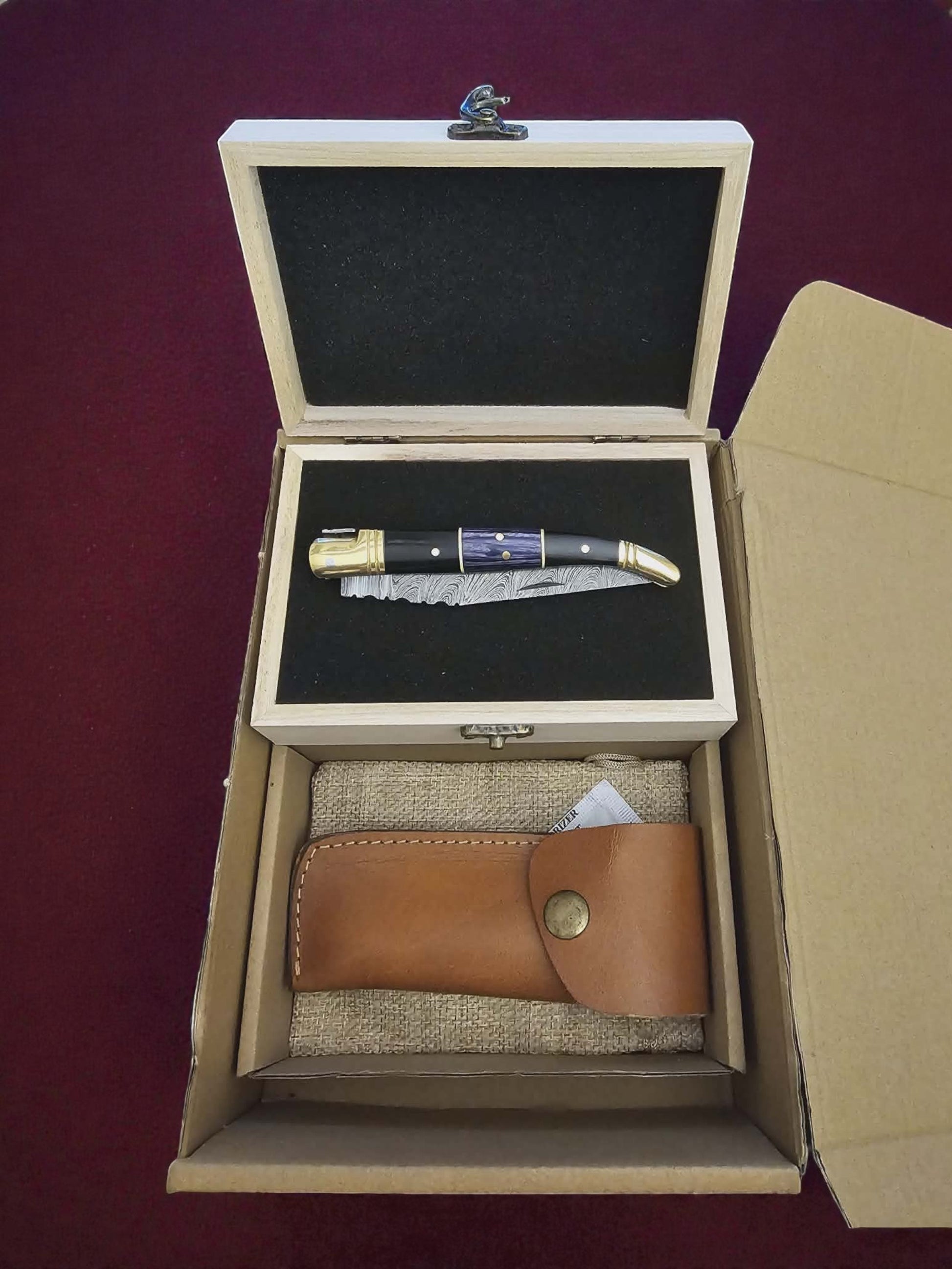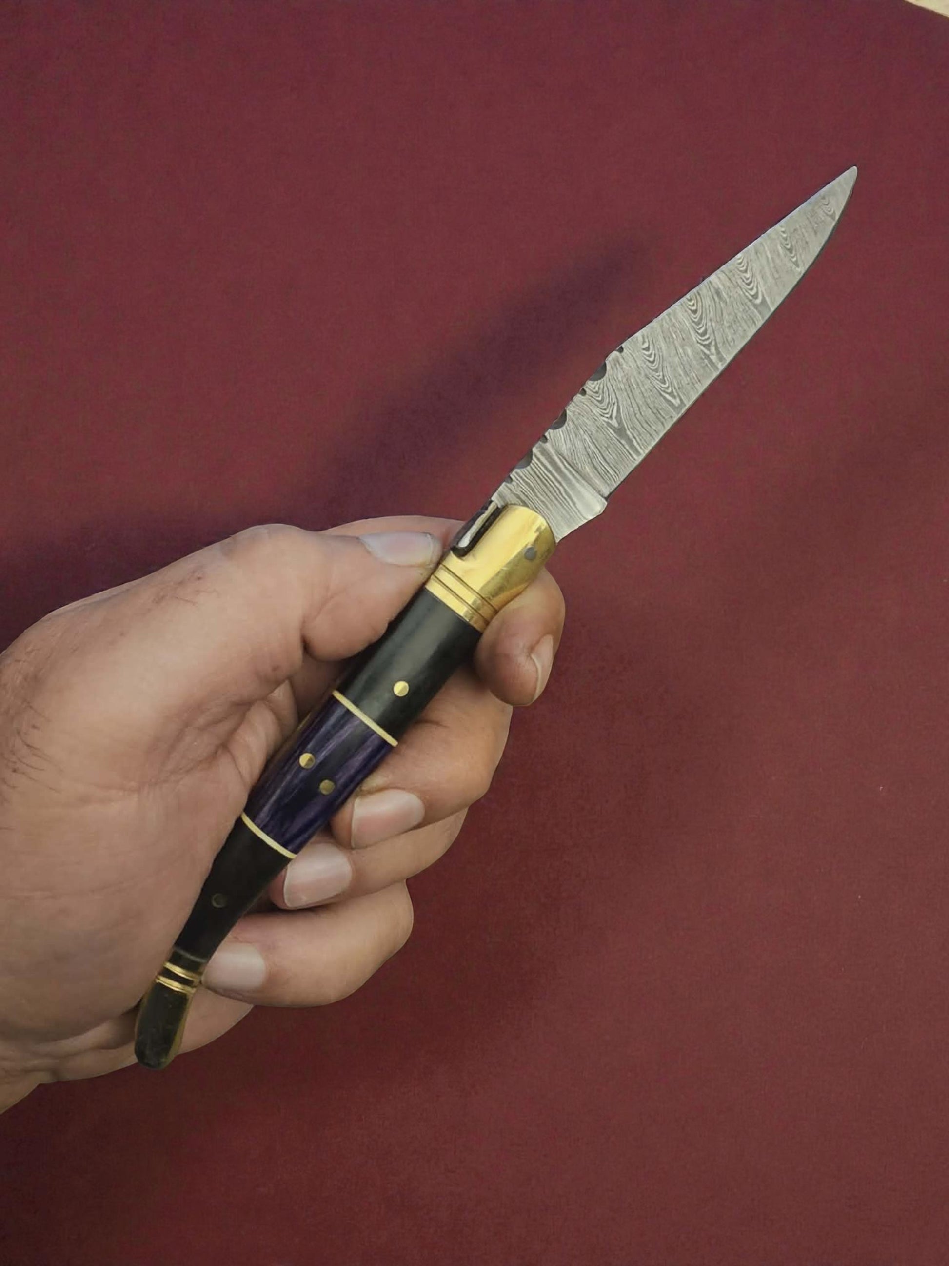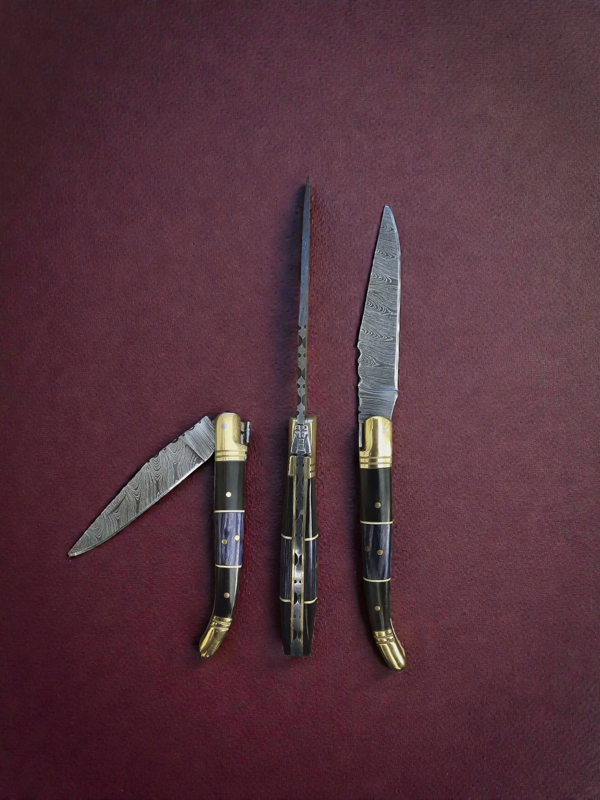 F012 - Χειροποίητο Laguiole Classique από Δαμασκηνό Ατσάλι - Κέρατο βουβαλιού & ξύλο σταθεροποιημένο σε ρητίνη