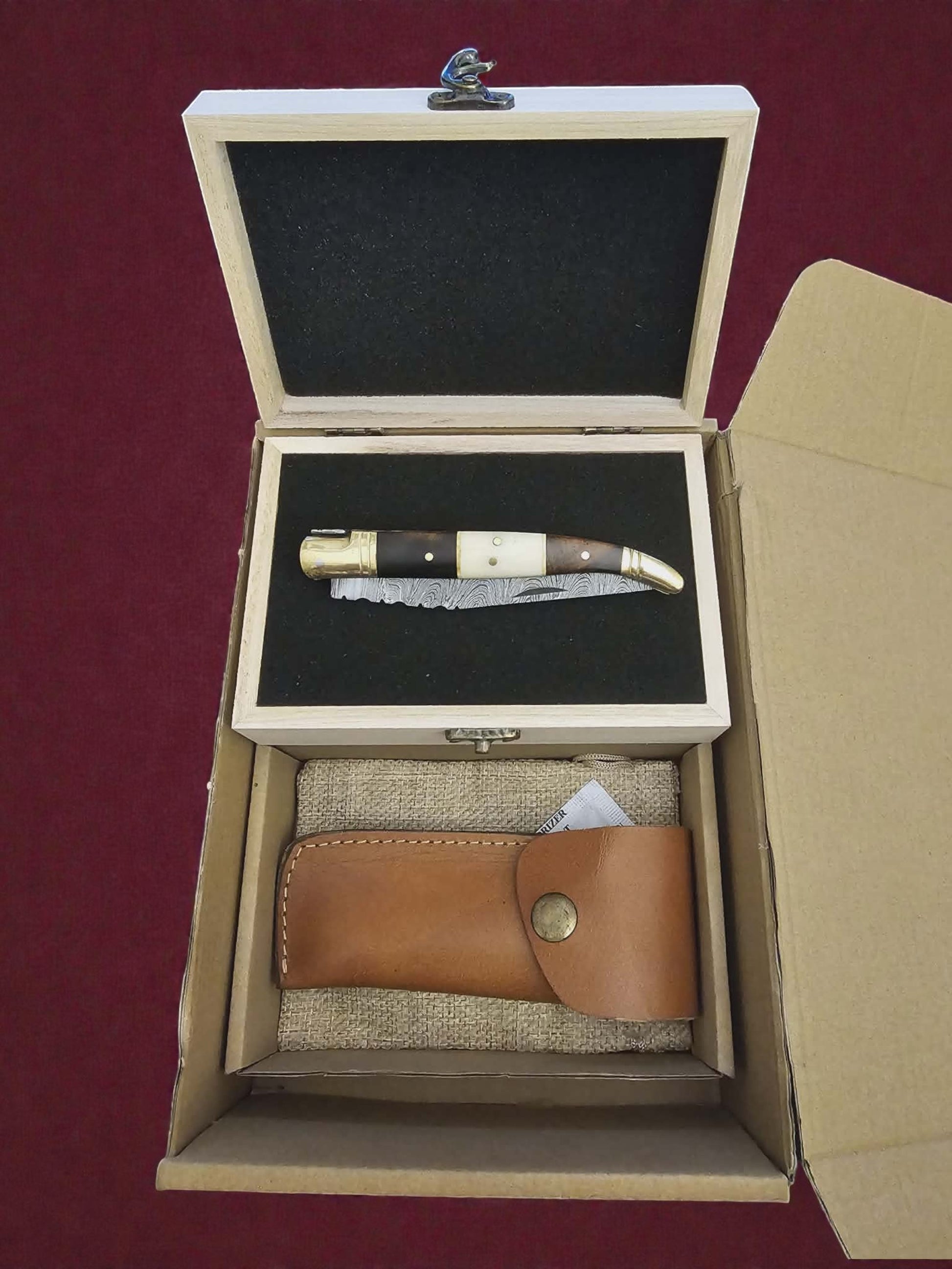 F013 - Χειροποίητο Laguiole Classique από Δαμασκηνό Ατσάλι - Ξύλο τριανταφυλλιάς & κόκκαλο καμήλας