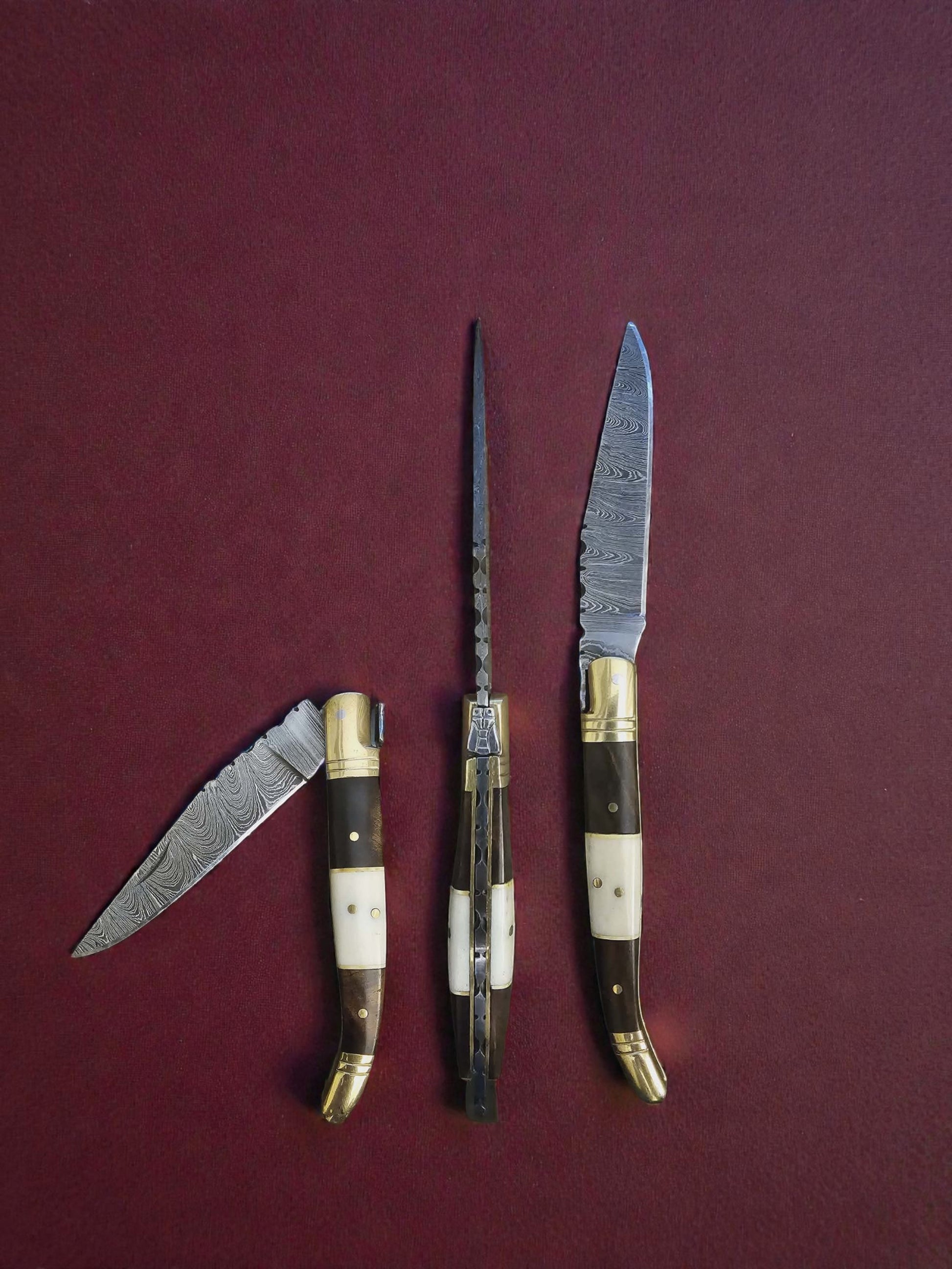 Ένα ιδιαίτερο Laguiole Classique με τριμερή λαβή, που συνδυάζει διαφορετικές φυσικές υφές και υλικά σε ένα ισορροπημένο, χειροποίητο σύνολο, απευθείας από τον κατασκευαστή.