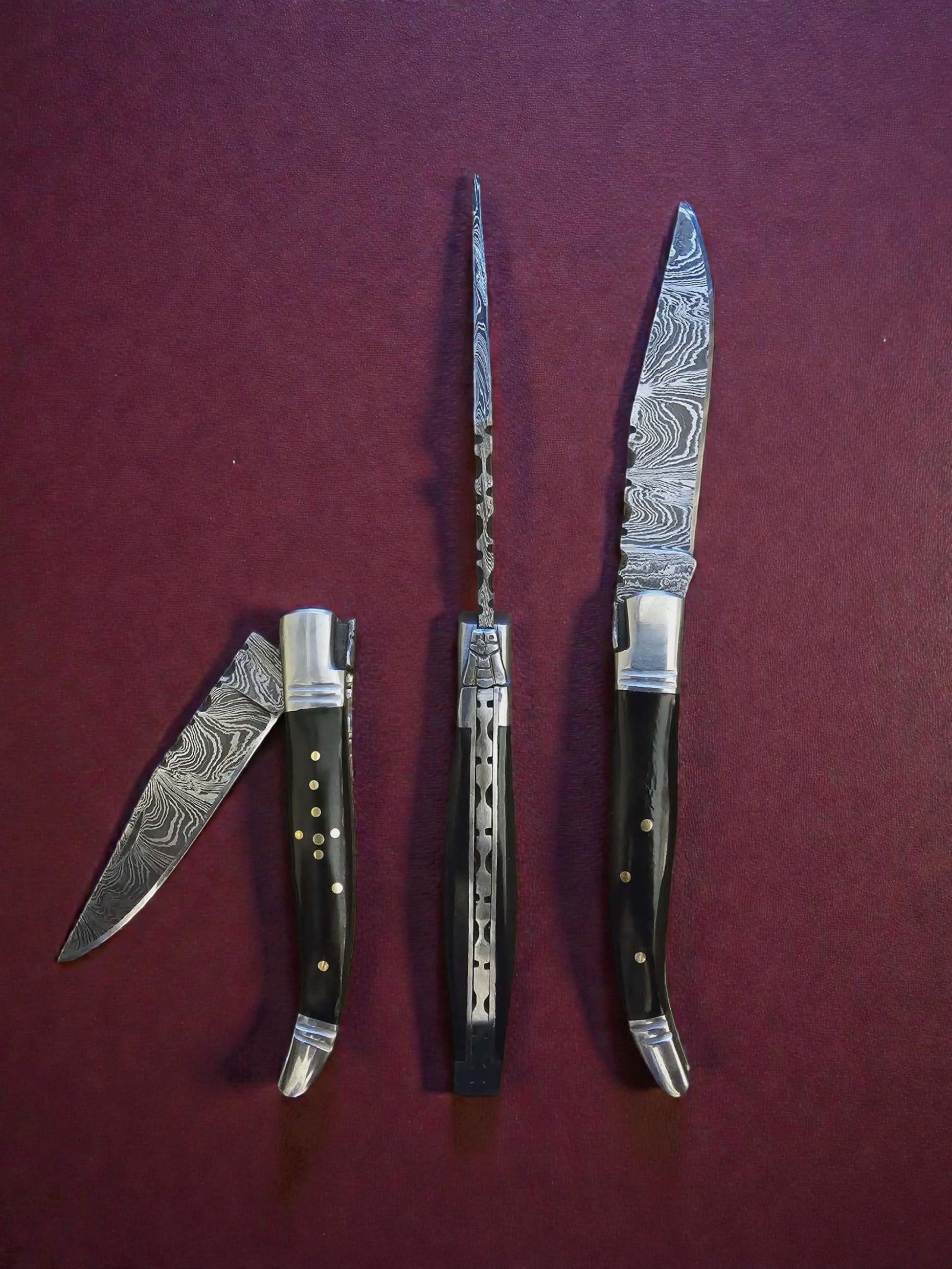 F023 - Χειροποίητο Laguiole Rustique από Δαμασκηνό Ατσάλι & Κέρατο βούβαλου