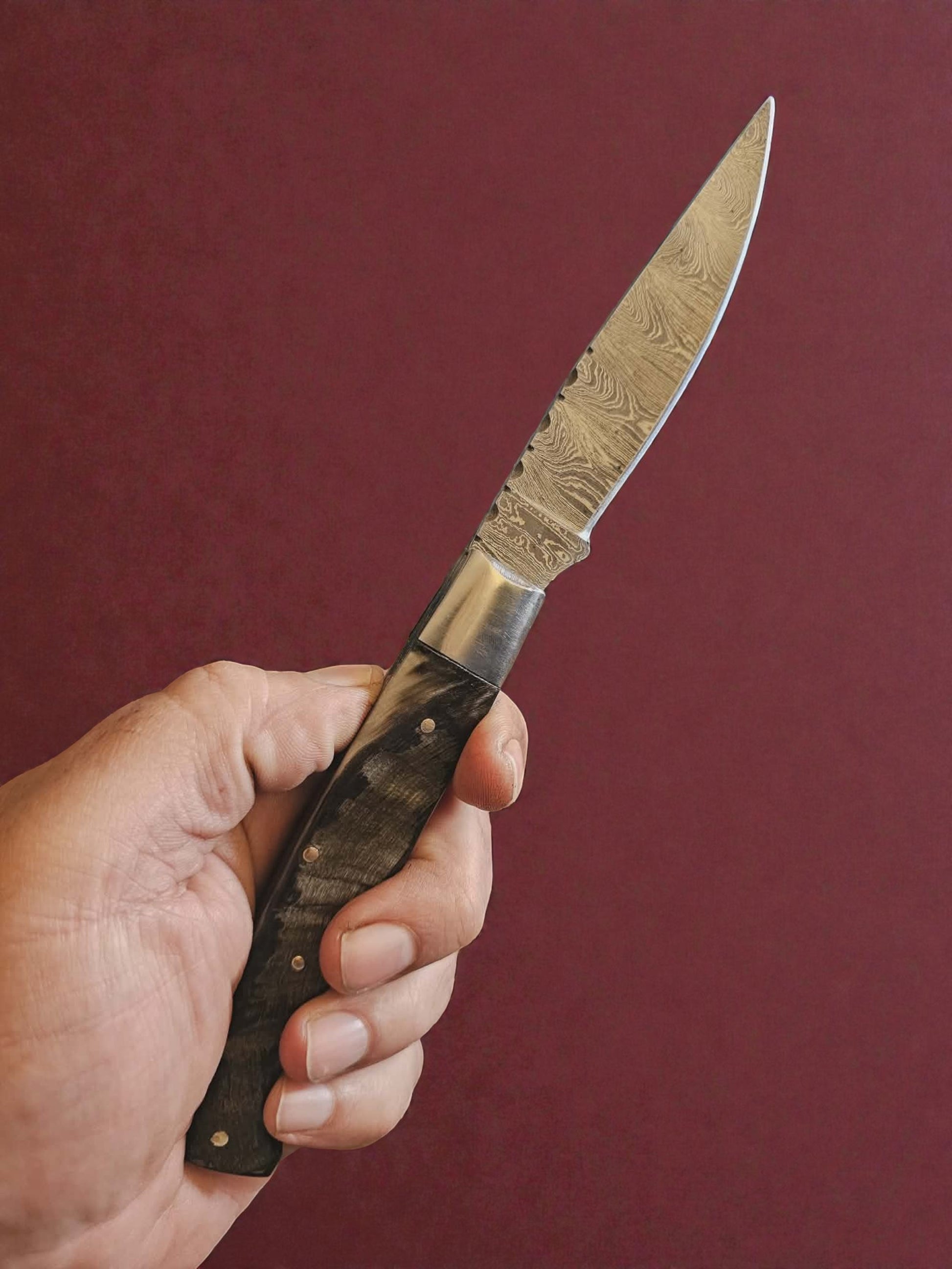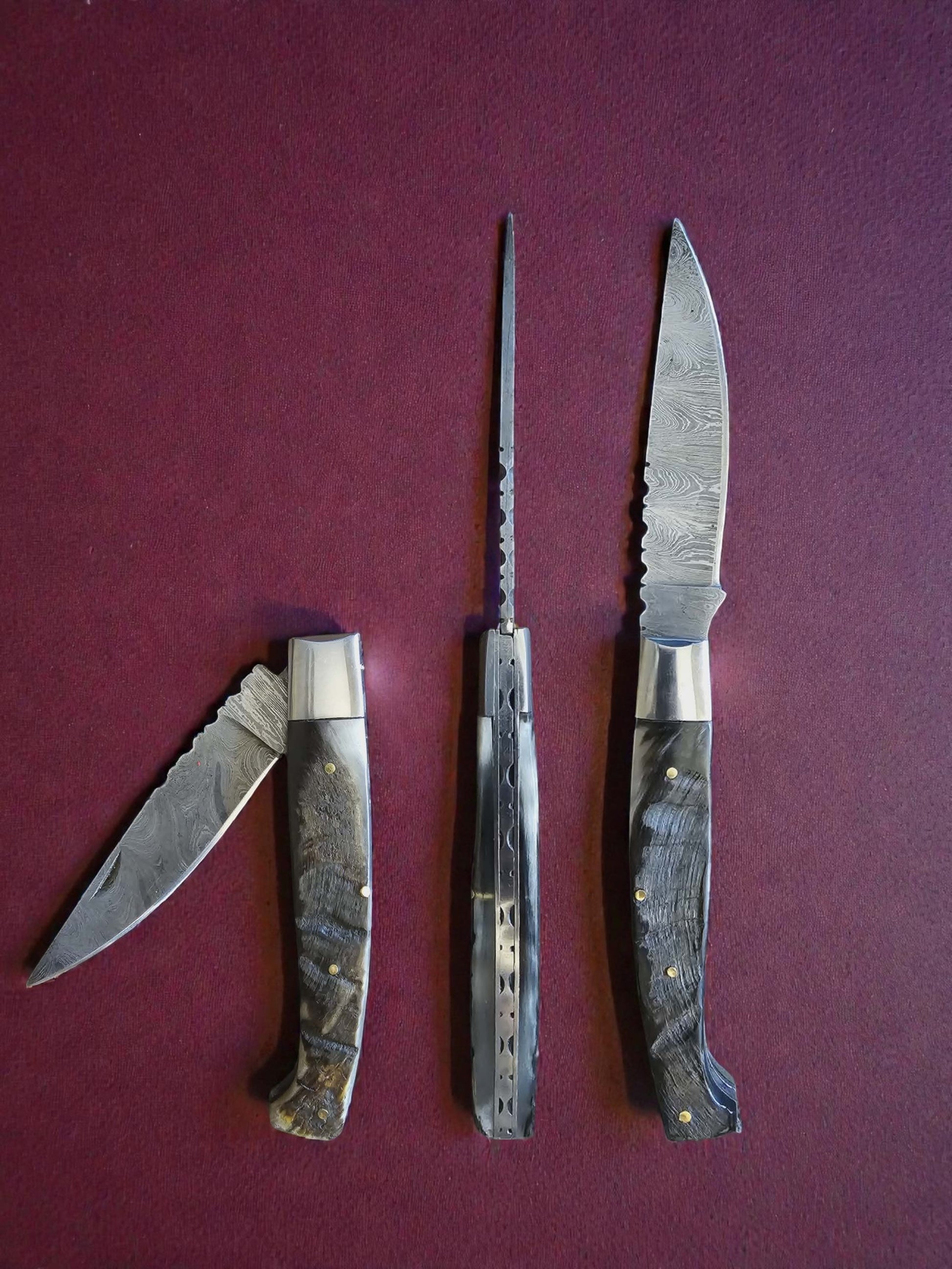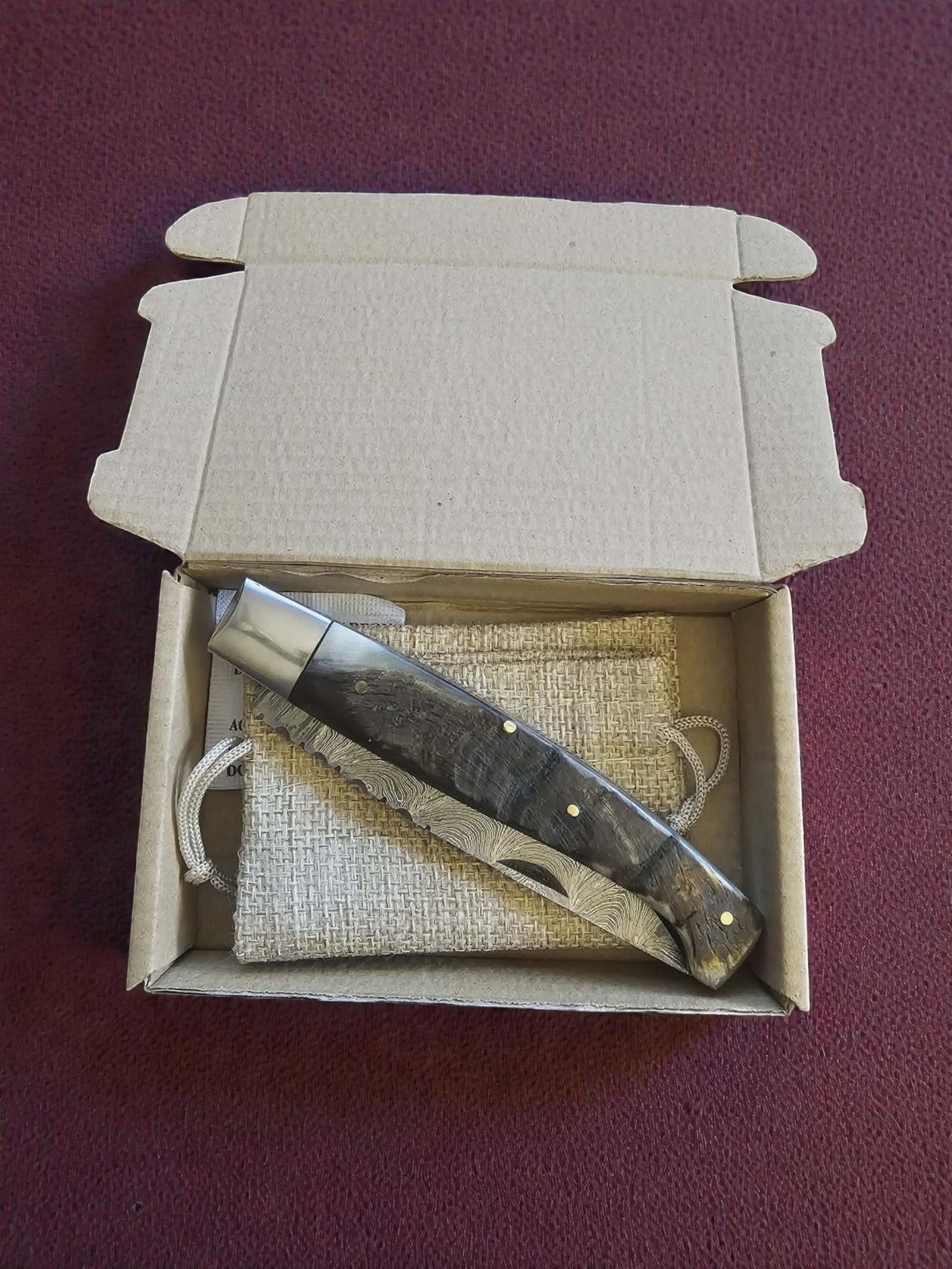 F029 - Χειροποίητο Resolza Pattadese από Δαμασκηνό Ατσάλι & Κέρατο κριαριού