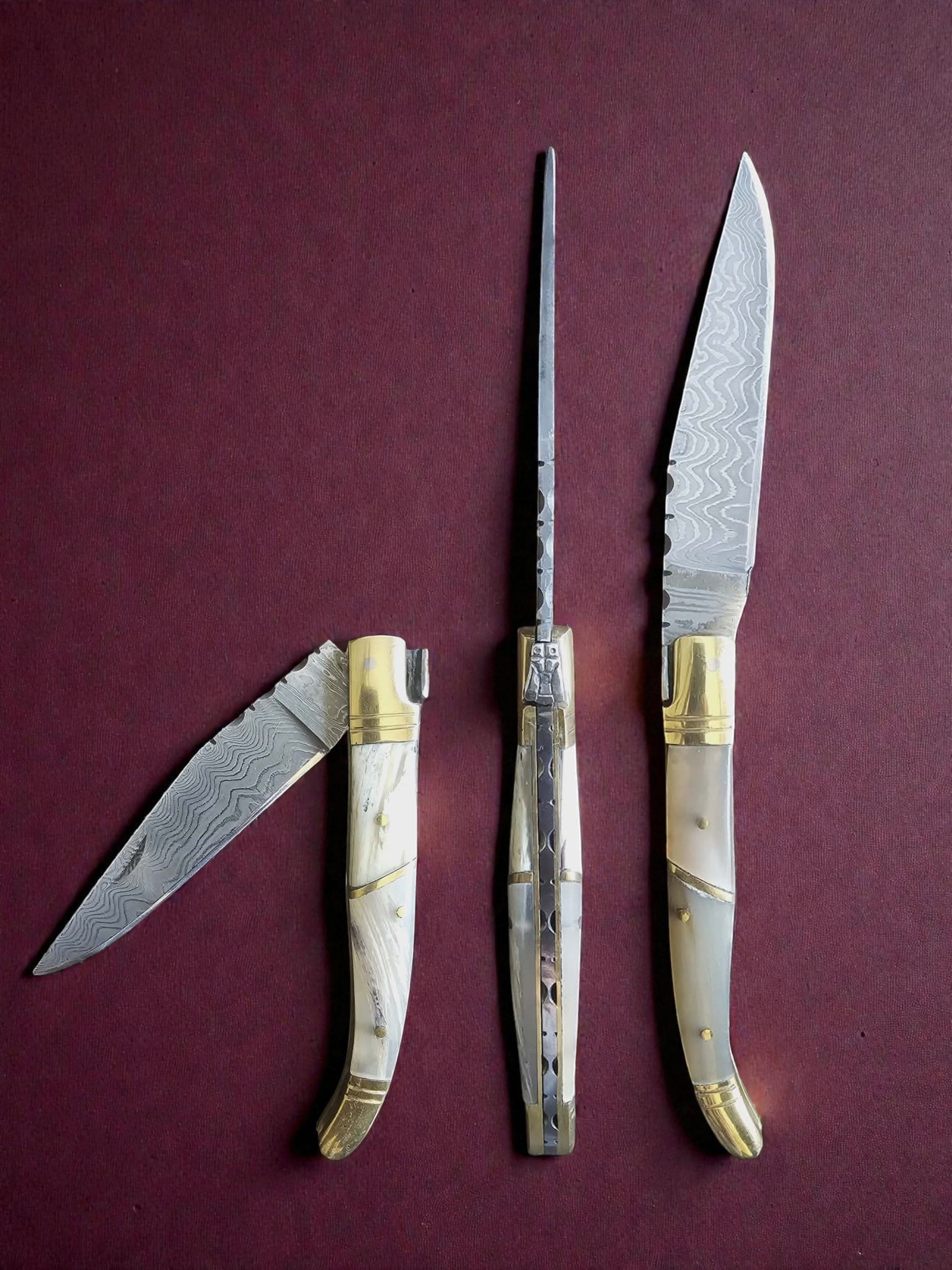 F032 - Χειροποίητο Laguiole Classique από Δαμασκηνό ατσάλι νέας γενιάς (ανοξείδωτο) & Αφρικανικό κέρατο βούβαλου