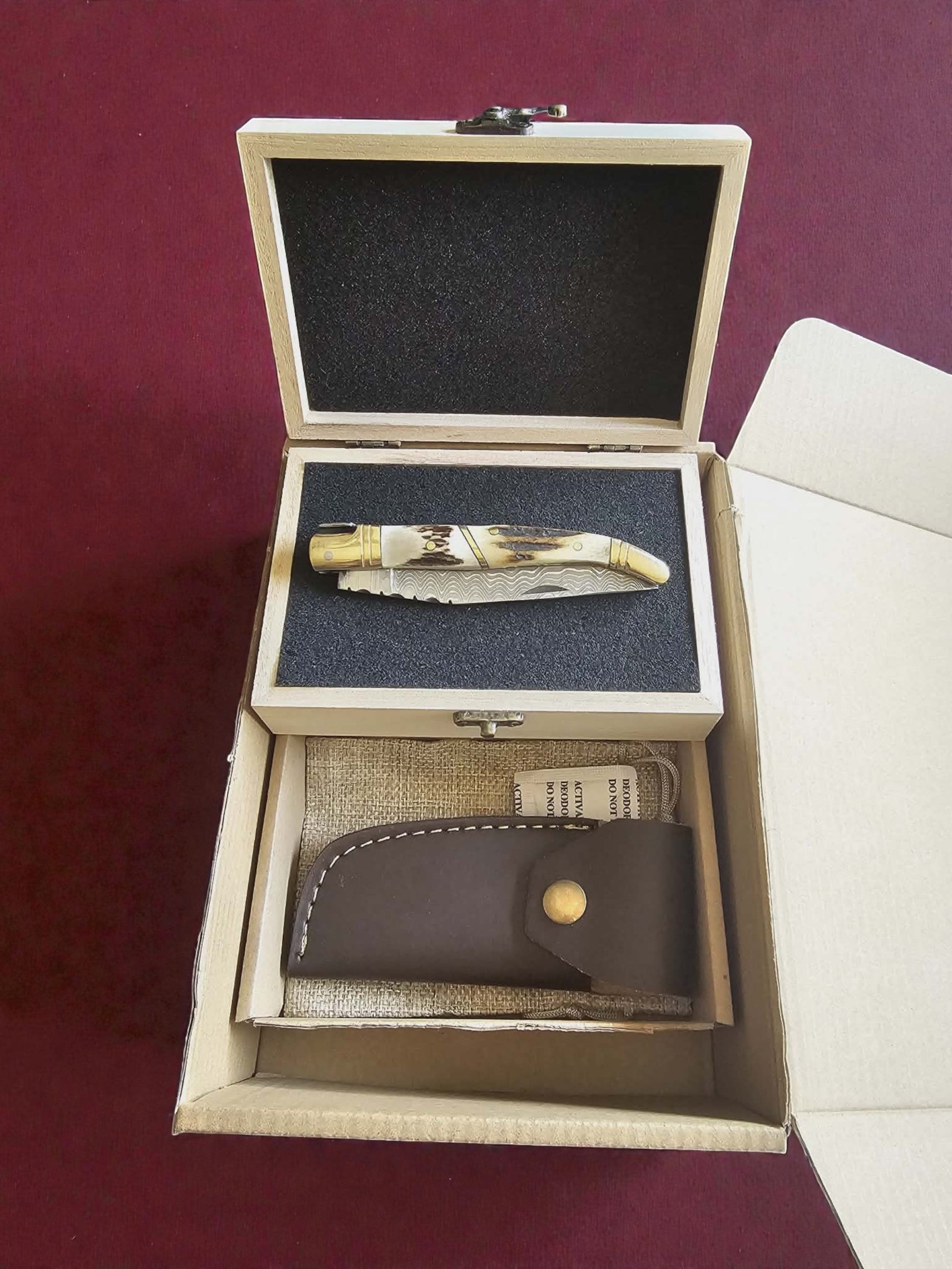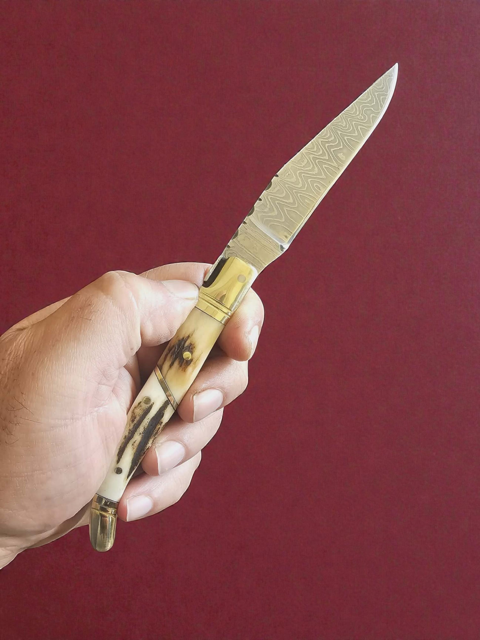 F033 - Χειροποίητο Laguiole Classique από Δαμασκηνό ατσάλι νέας γενιάς (ανοξείδωτο) & Κέρατο κόκκινου ελαφιού
