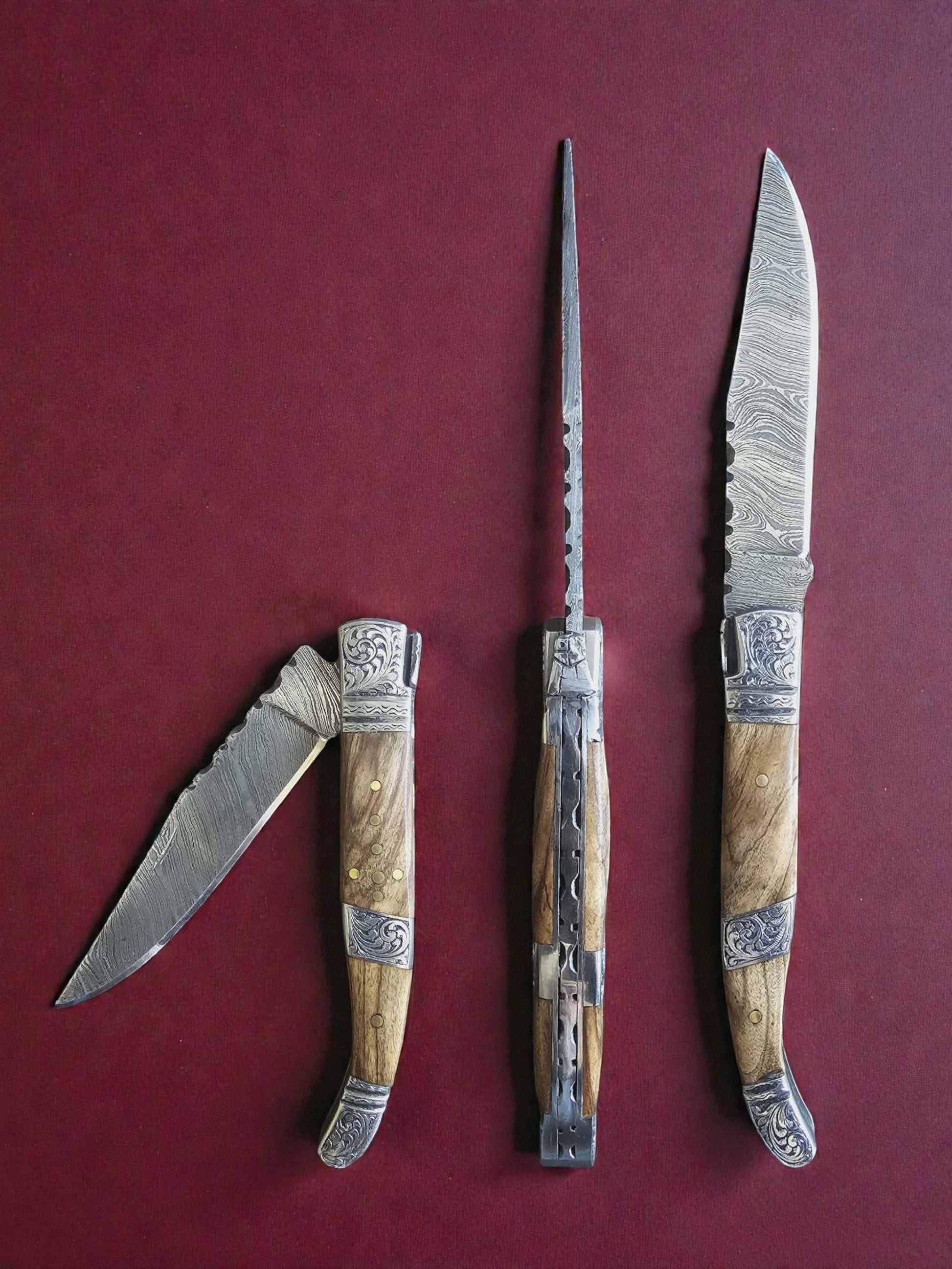 F038 - Χειροποίητο Laguiole Art Edition από Δαμασκηνό ατσάλι & Ξύλο ελιάς