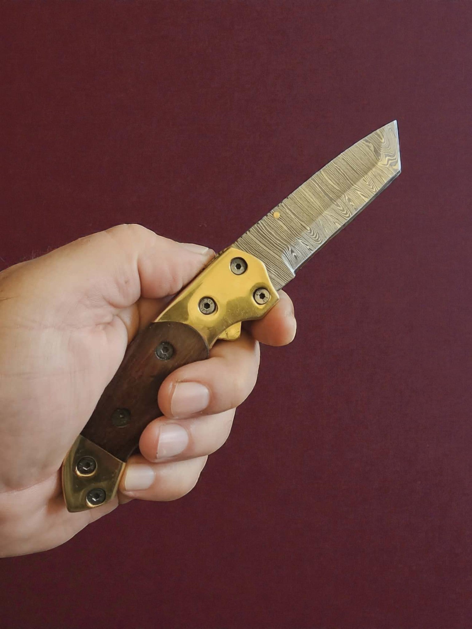 F056 - Χειροποίητο Tanto-EDC από Δαμασκηνό ατσάλι & Ξύλο καρυδιάς