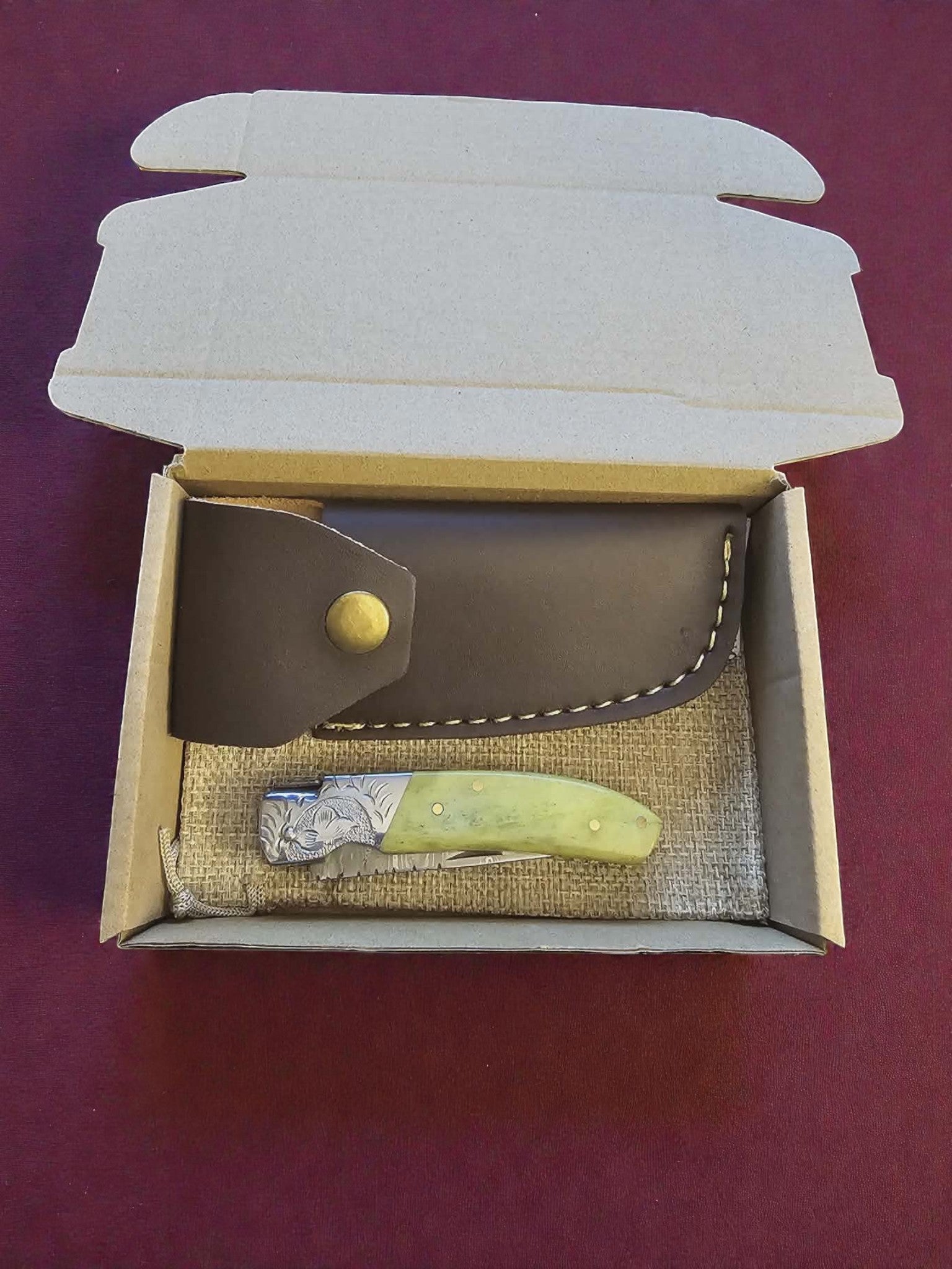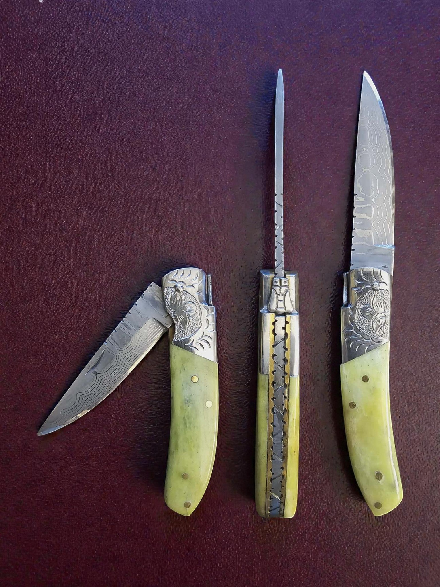 F061 - Χειροποίητο Laguiole de Poche από Δαμασκηνό ατσάλι νέας γενιάς (ανοξείδωτο) & Κόκκαλο καμήλας με σταθεροποίηση ρητίνης (πράσινο)