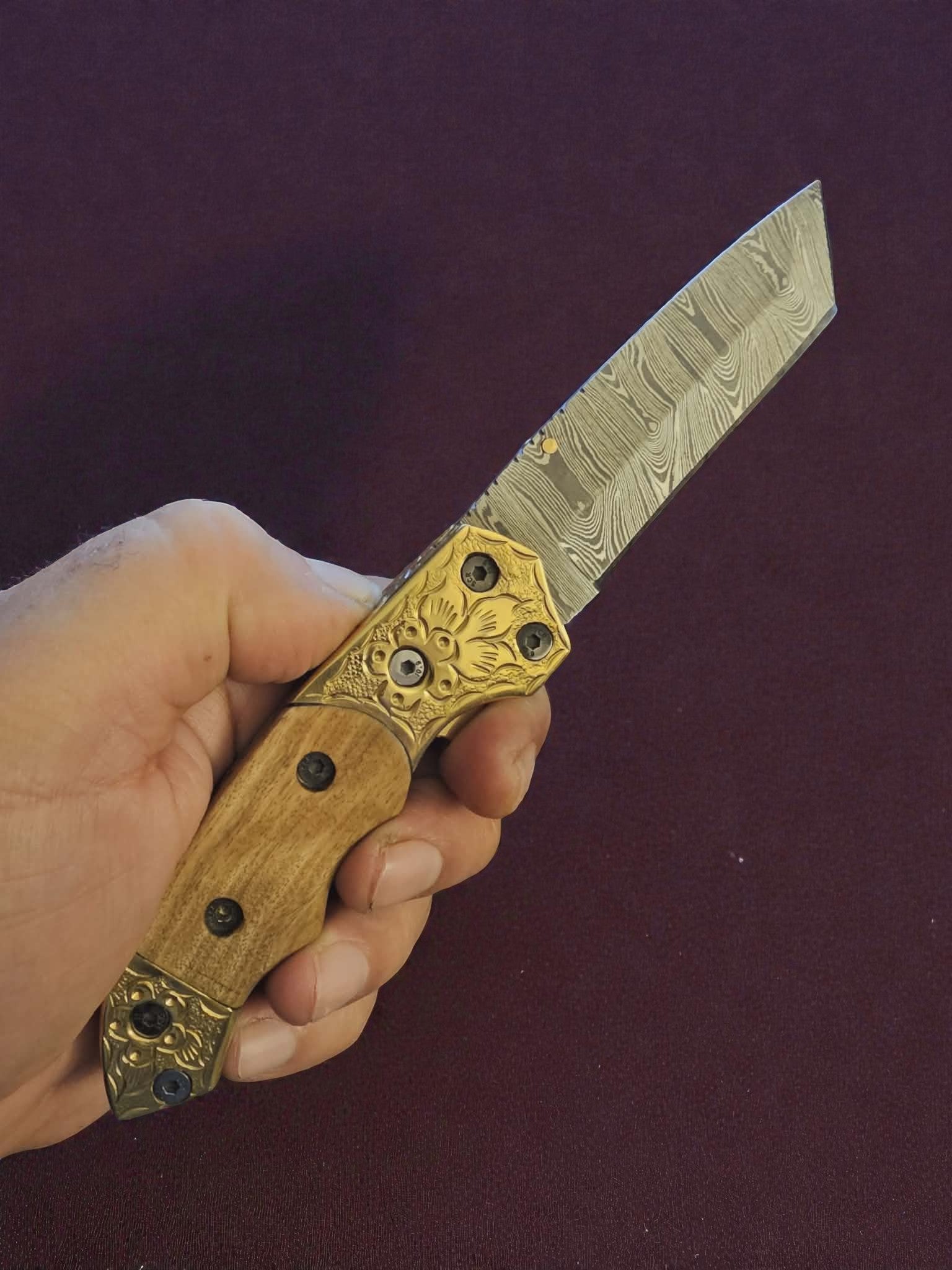 F063 - Χειροποίητο Tanto-EDC από Δαμασκηνό ατσάλι & Ξύλο ελιάς