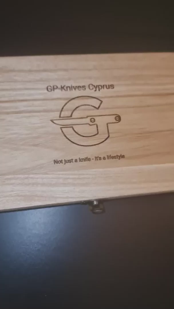 This impressive piece comes with a fitted leather (Free) sheath and is presented in a hand-crafted wooden gift box (€20) with precision-cut EVA foam (box size: 26×16×6 cm, knife length: 33 cm). A complete, premium gift set ready to offer.