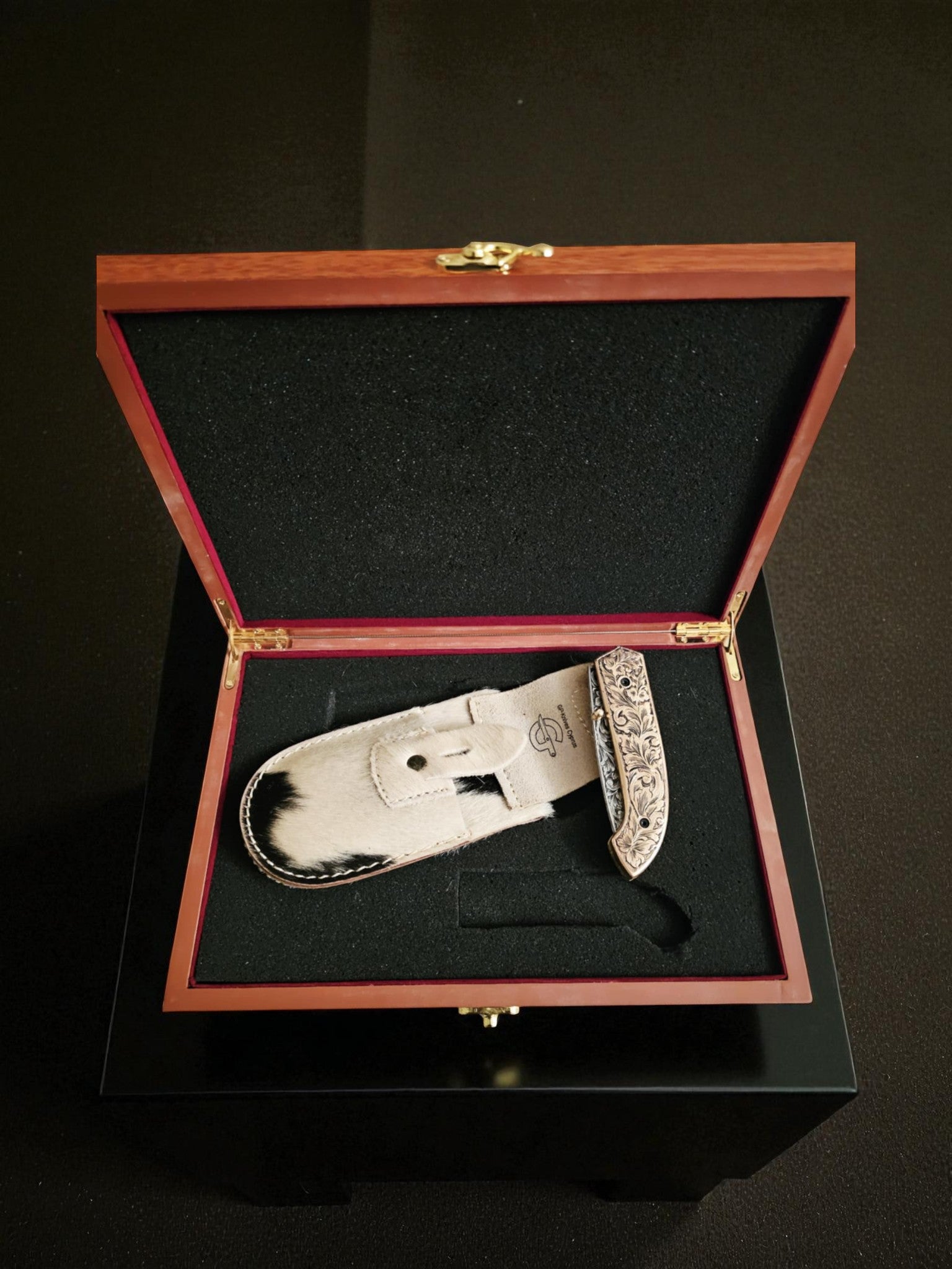 It comes with a premium leather sheath (Z009 €30) made from wild ibex and is presented in a luxury hand-crafted wooden gift box (Z005 €50) with precision-cut EVA foam (box size: 28×18×8 cm, knife length: 21 cm). A complete high-end gift set ready to impress.