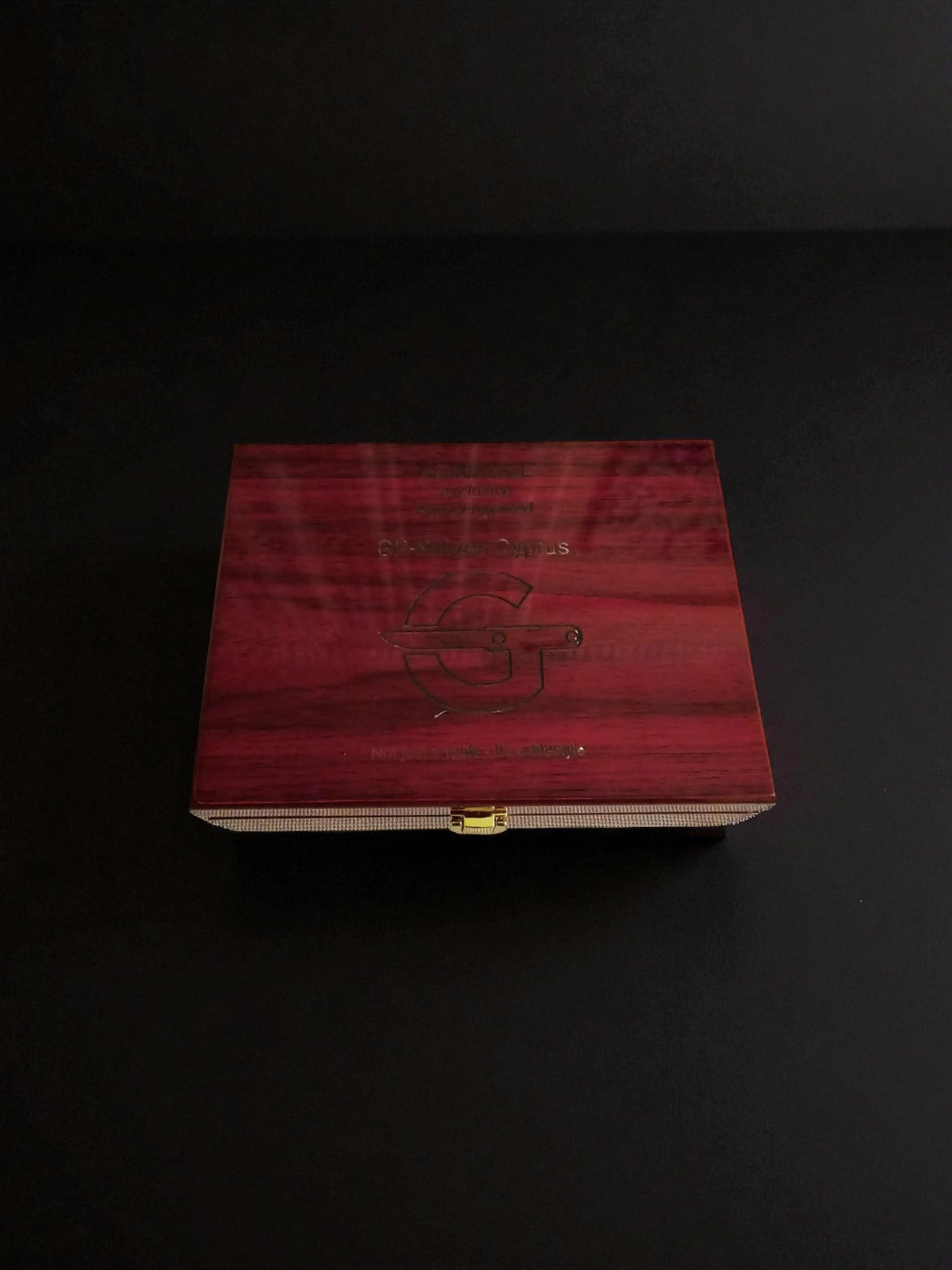 It comes with a leather sheath (Z007 €5) and is presented in a premium hand-crafted wooden gift box (Z003 €30) with precision-cut EVA foam (box size: 20×15×6 cm, knife length: 20 cm), creating a complete and impressive gift set.