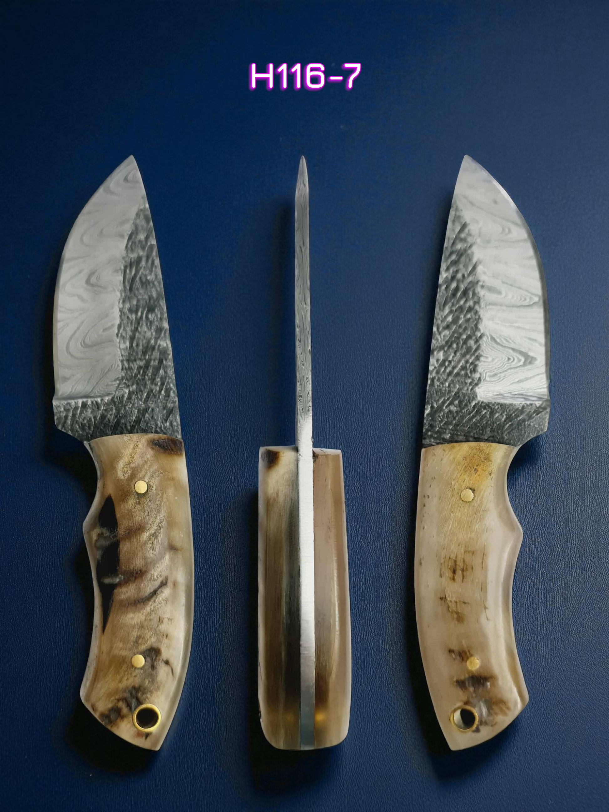 H116 Handmade Mini Skinner Knife - Damascus Steel & Ram Horn