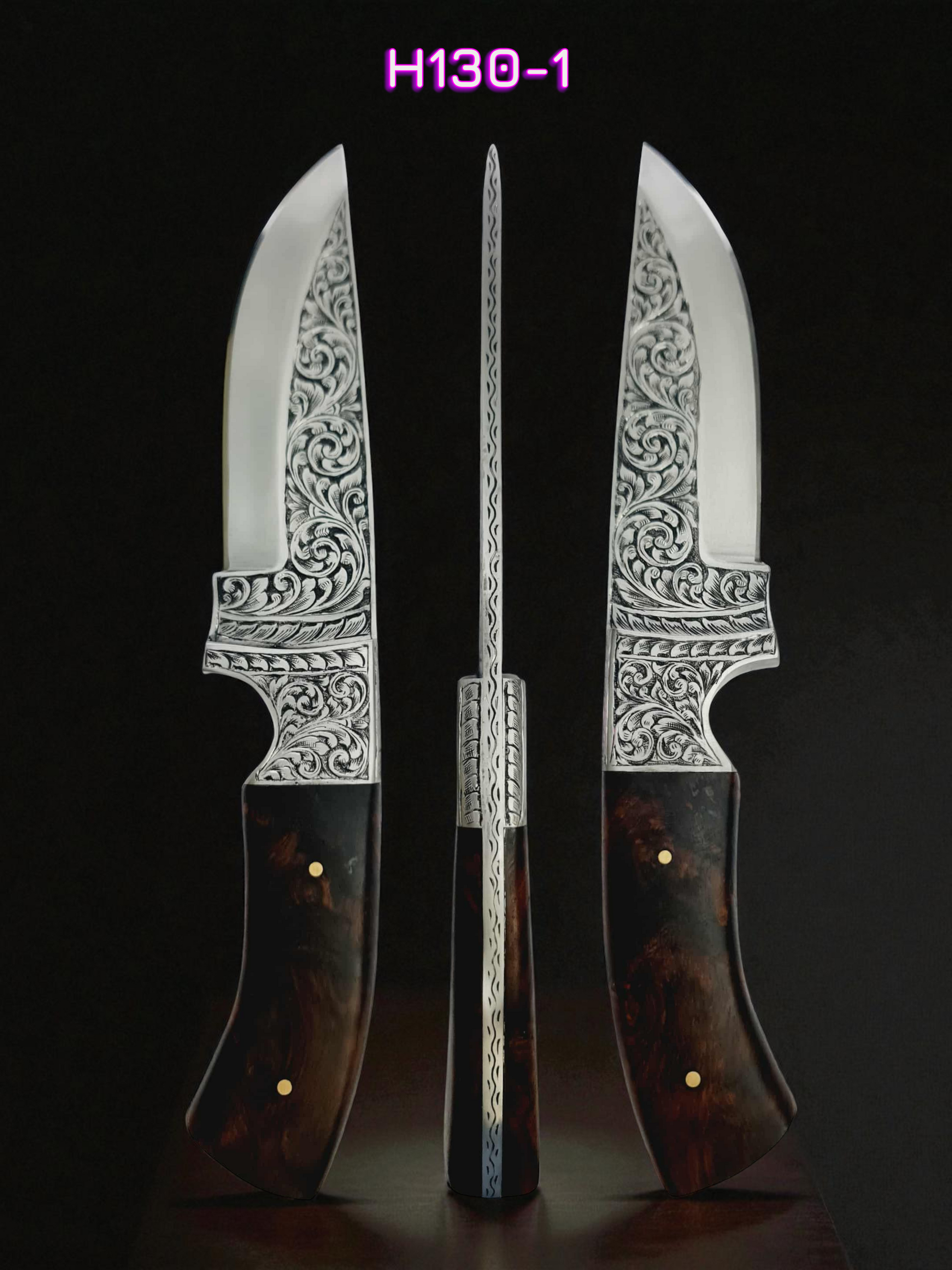 H130 Handmade Exclusive Knife - Hand-Engraved Stainless Steel & Rosewood