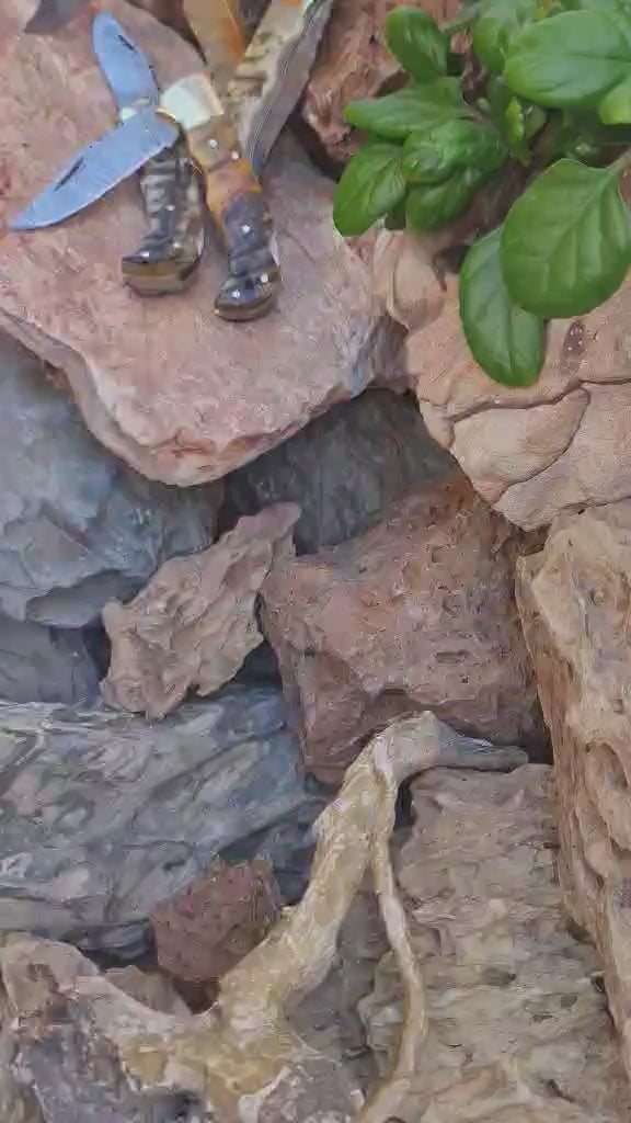 Handmade 17cm Pocket Knife with Damascus Steel - Ram Horn & Brass