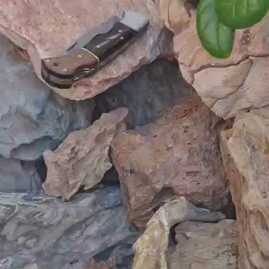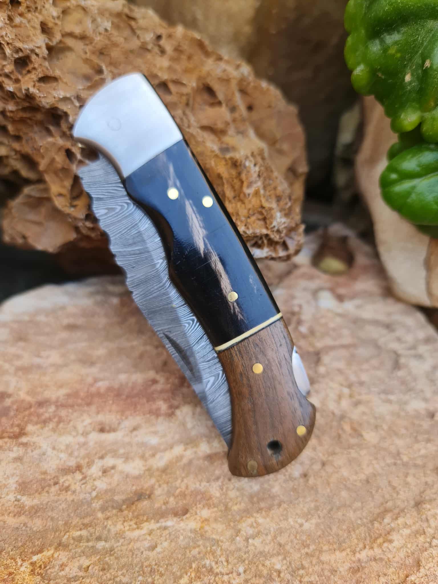 Handmade 19cm Pocket Knife with Damascus Steel - Buffalo Horn - Walnut Wood & D2 Stainless Steel