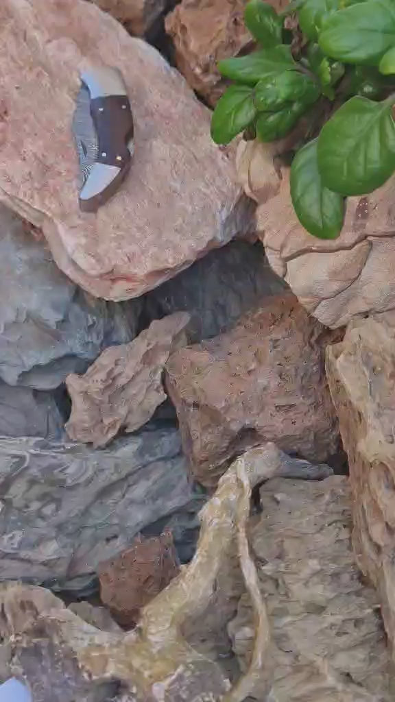 Handmade 20cm Pocket Knife with Damascus Steel - Walnut Wood & D2 Stainless Steel