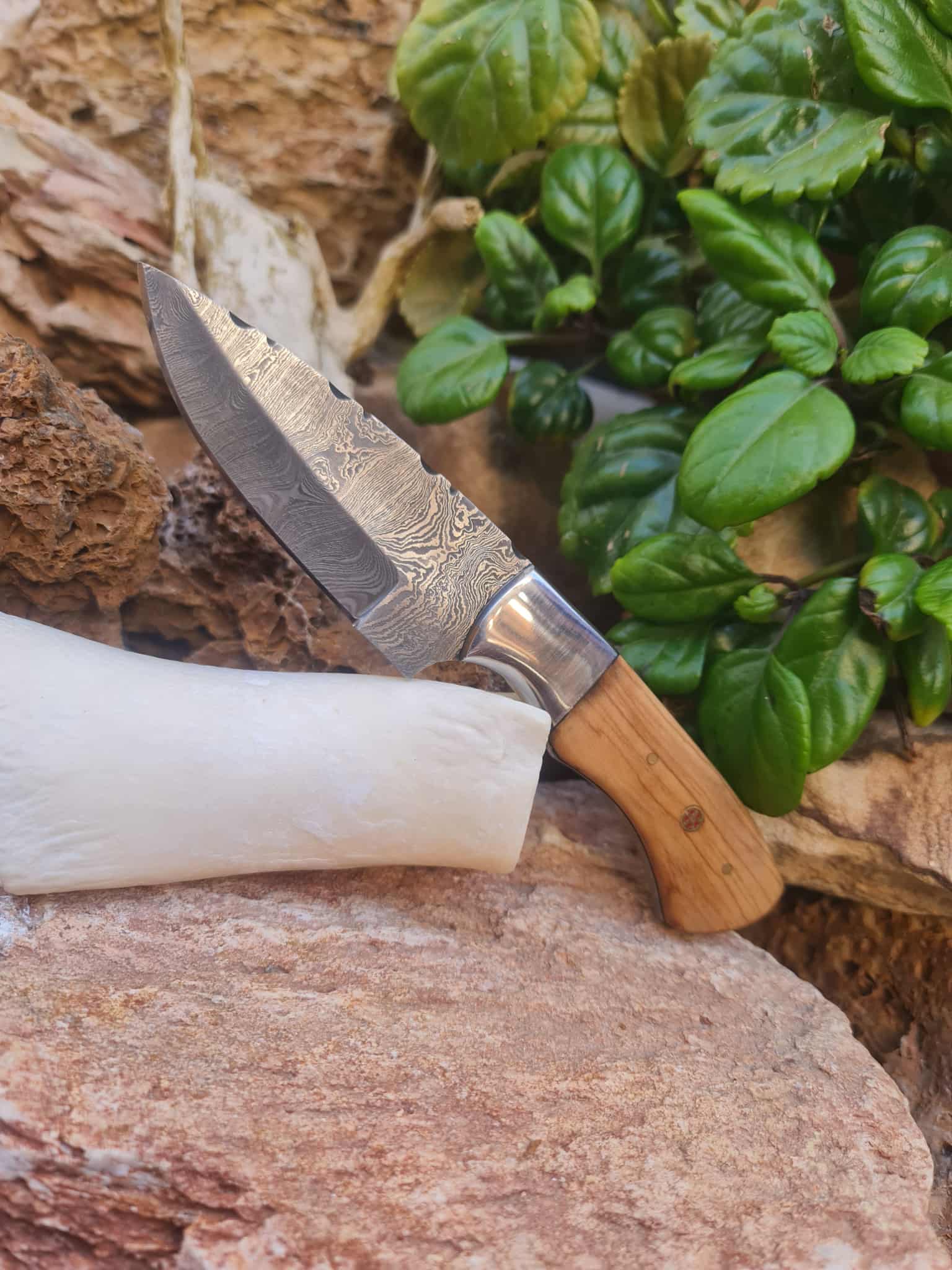 Handmade 20cm Skinner Knife with Damascus Steel - Olive wood & D2 Stainless Steel