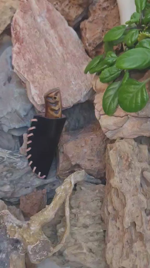 Handmade 15cm Mini Skinner Knife with Damascus Steel & Ram Horn