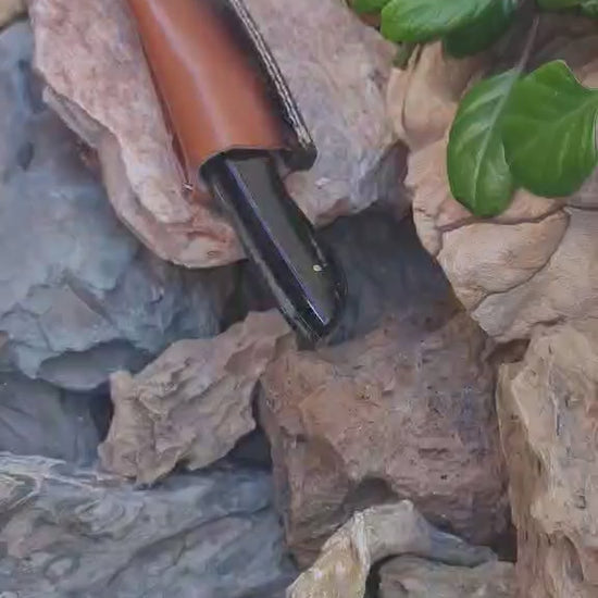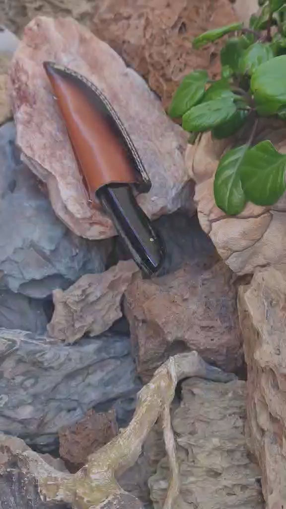 Handmade 21cm Hunting Knife with Damascus Steel & Buffalo Horn