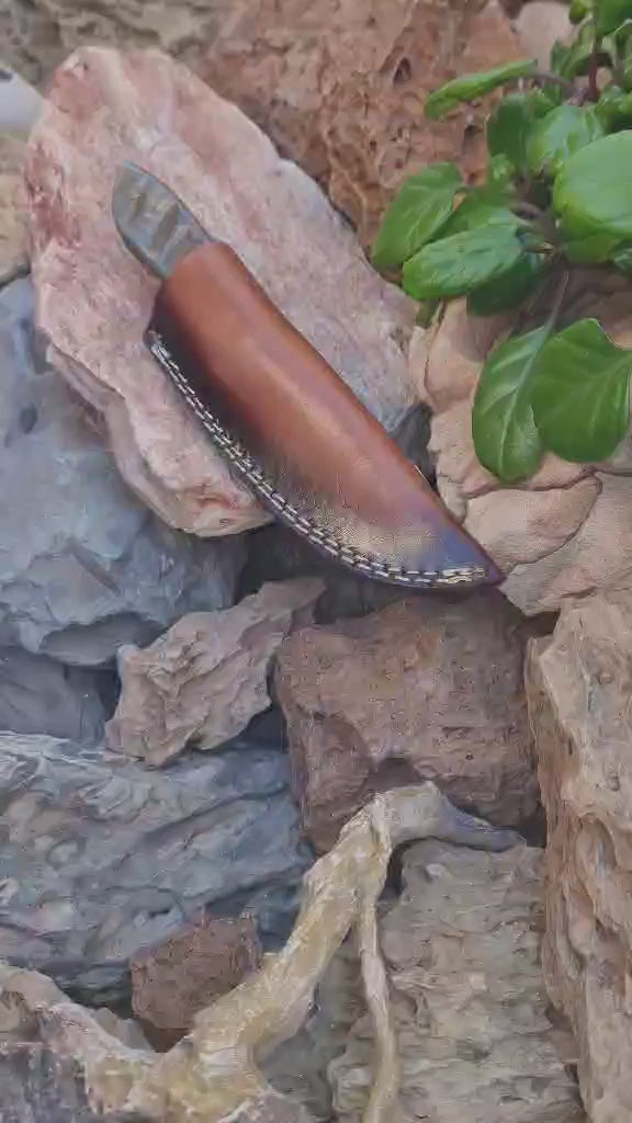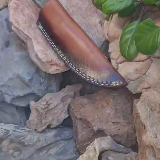 Handmade 21cm Hunting Knife with Damascus Steel & Ram Horn