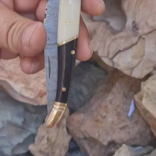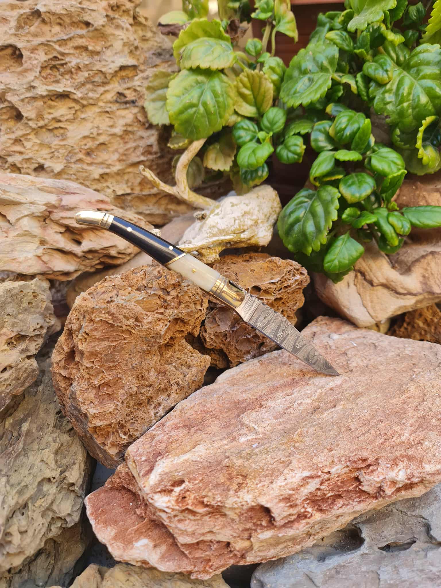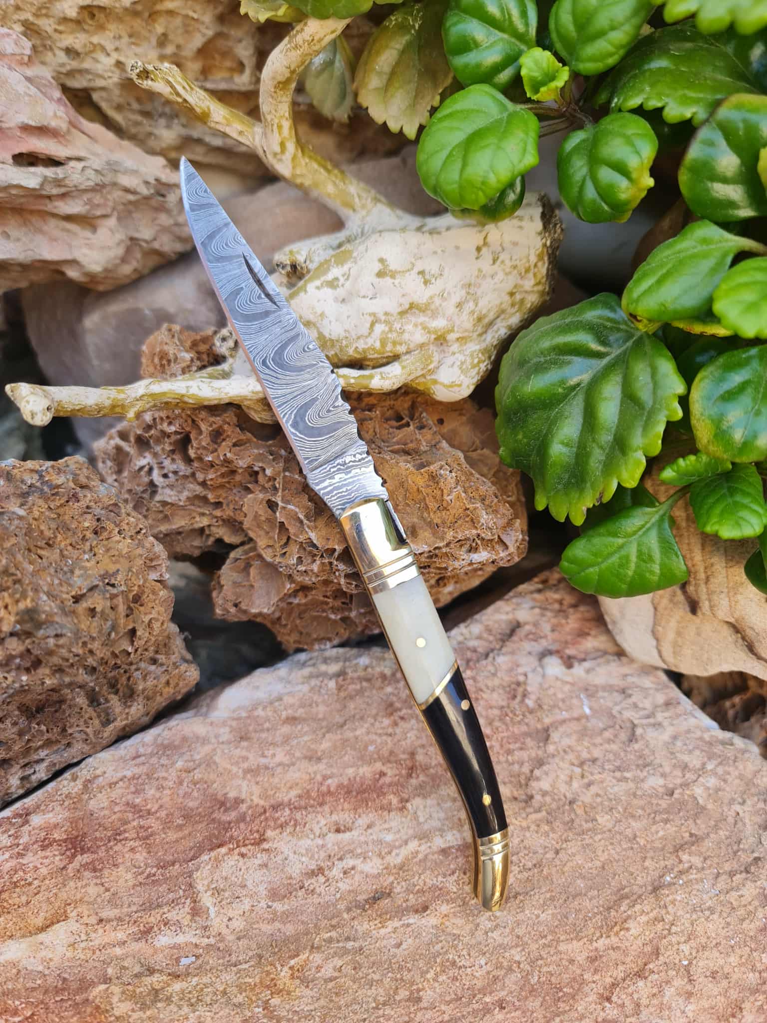 Handmade 22cm Laguiole Classique with Damascus Steel - Camel Bone - Buffalo Horn & Brass