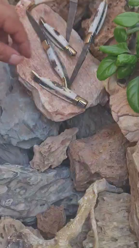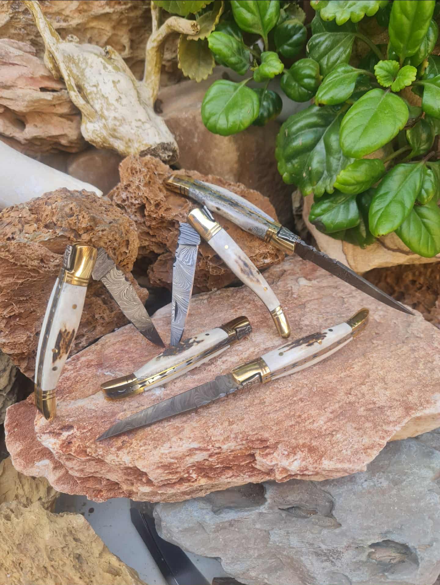 Handmade 19cm Laguiole Classique with Damascus Steel - Red Deer antler & Brass