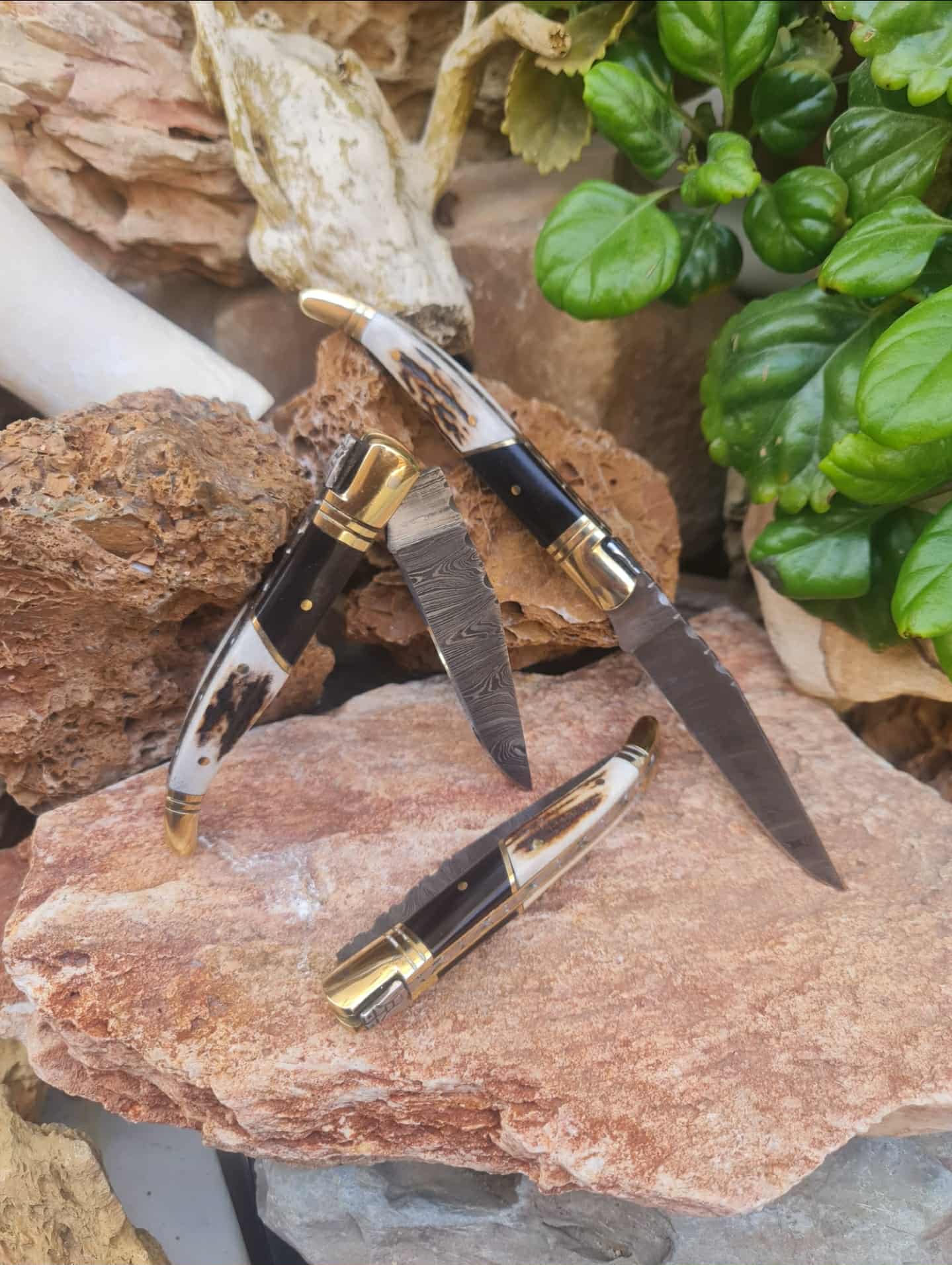 Handmade 22cm Laguiole Classique with Damascus Steel - Red Deer antler - Buffalo Horn & Brass