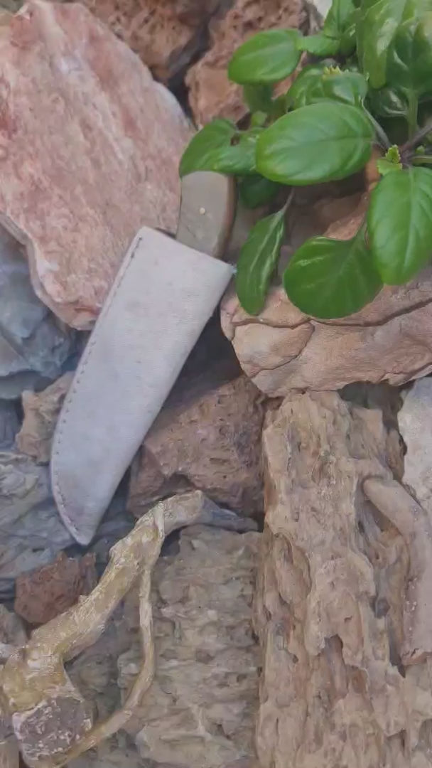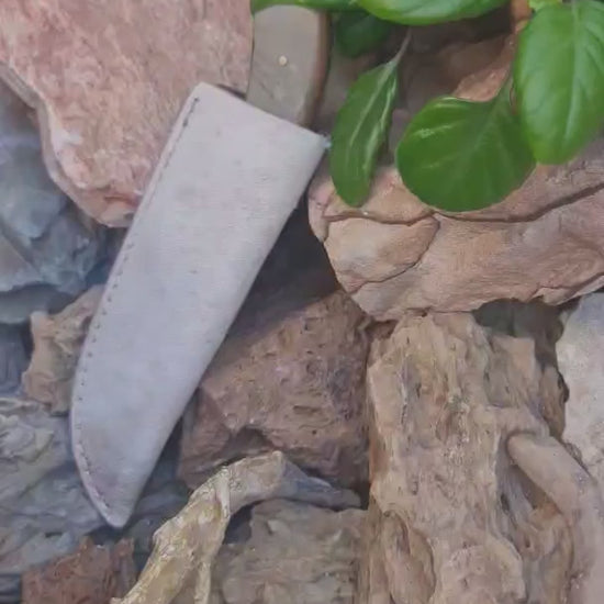 Handmade 22cm Premium Hunting Knife with Raindrop Damascus Steel - Ibex Horn & Stainless Steel with Master Hand-Engraved