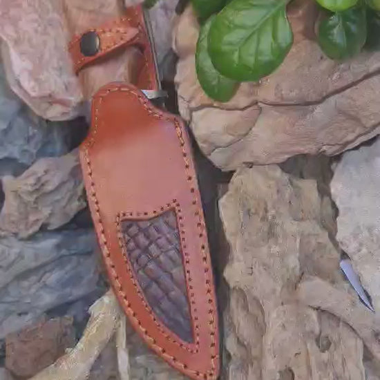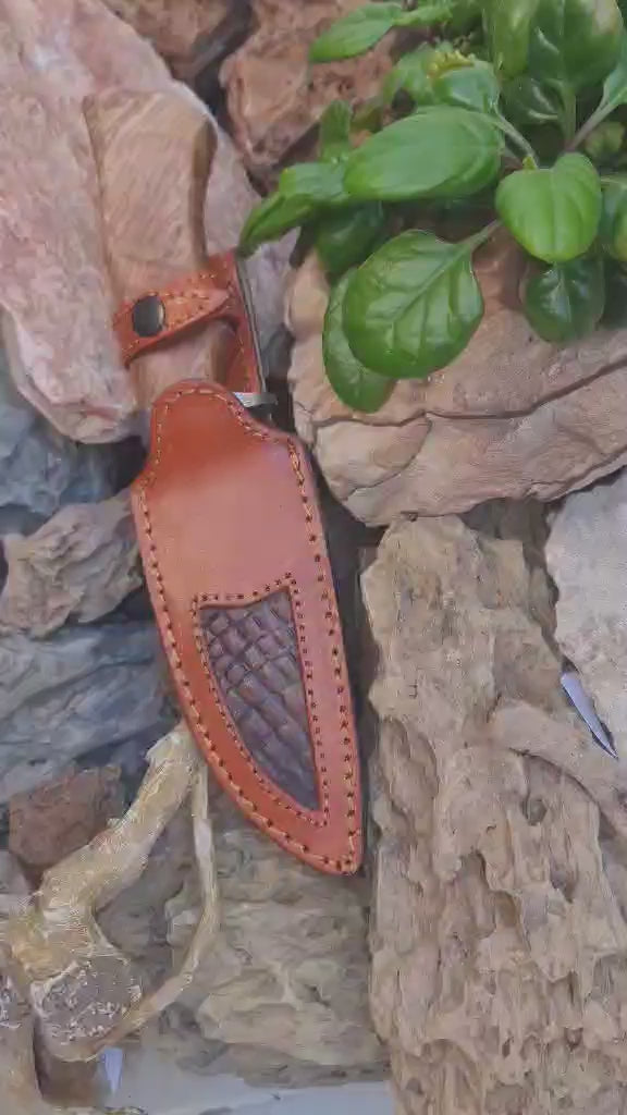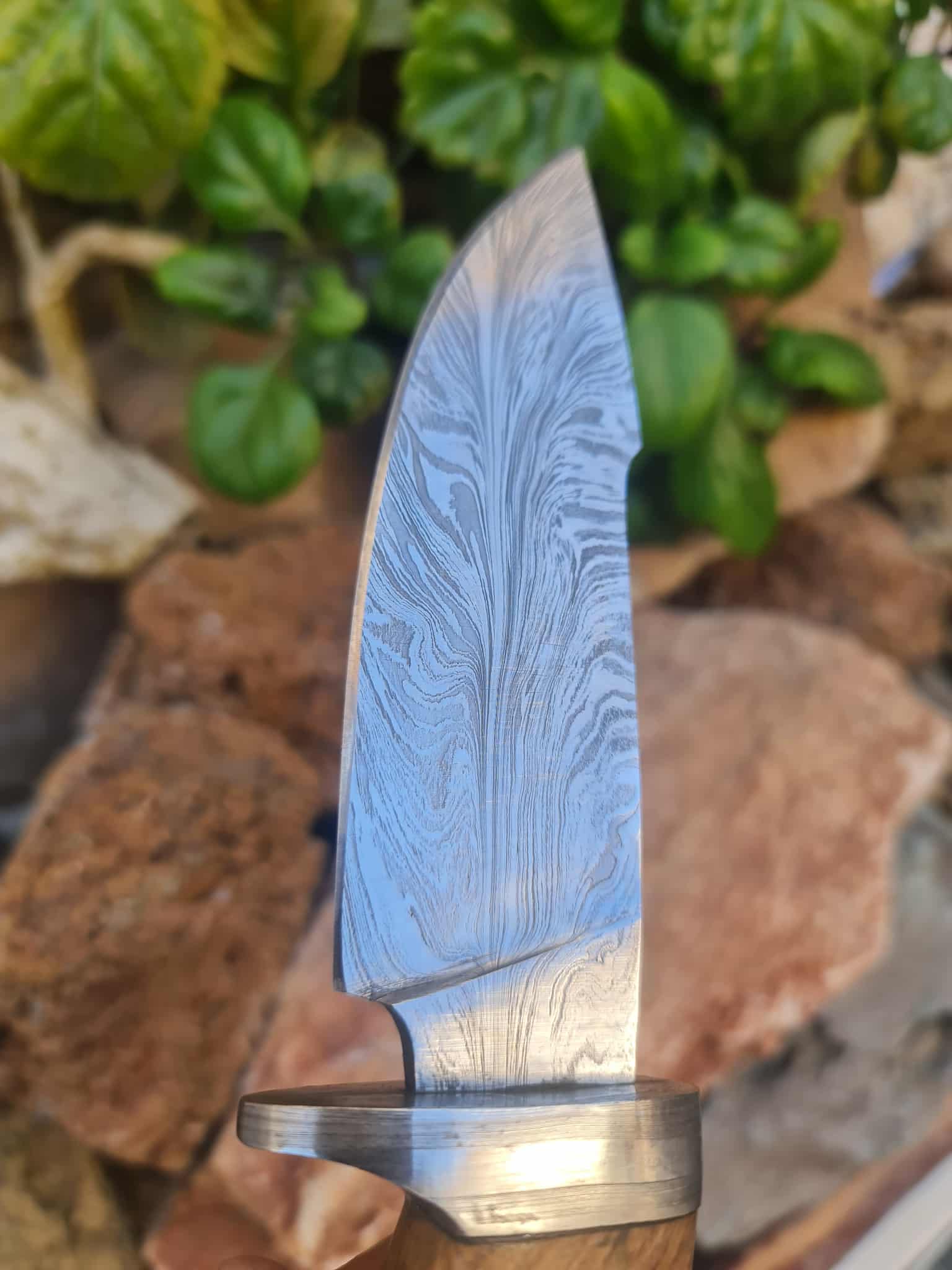 Handmade 27cm Hunting Knife with Feather Damascus Steel & Olive wood