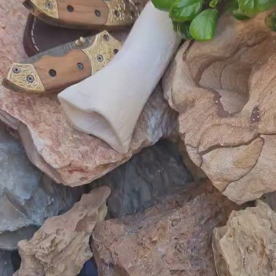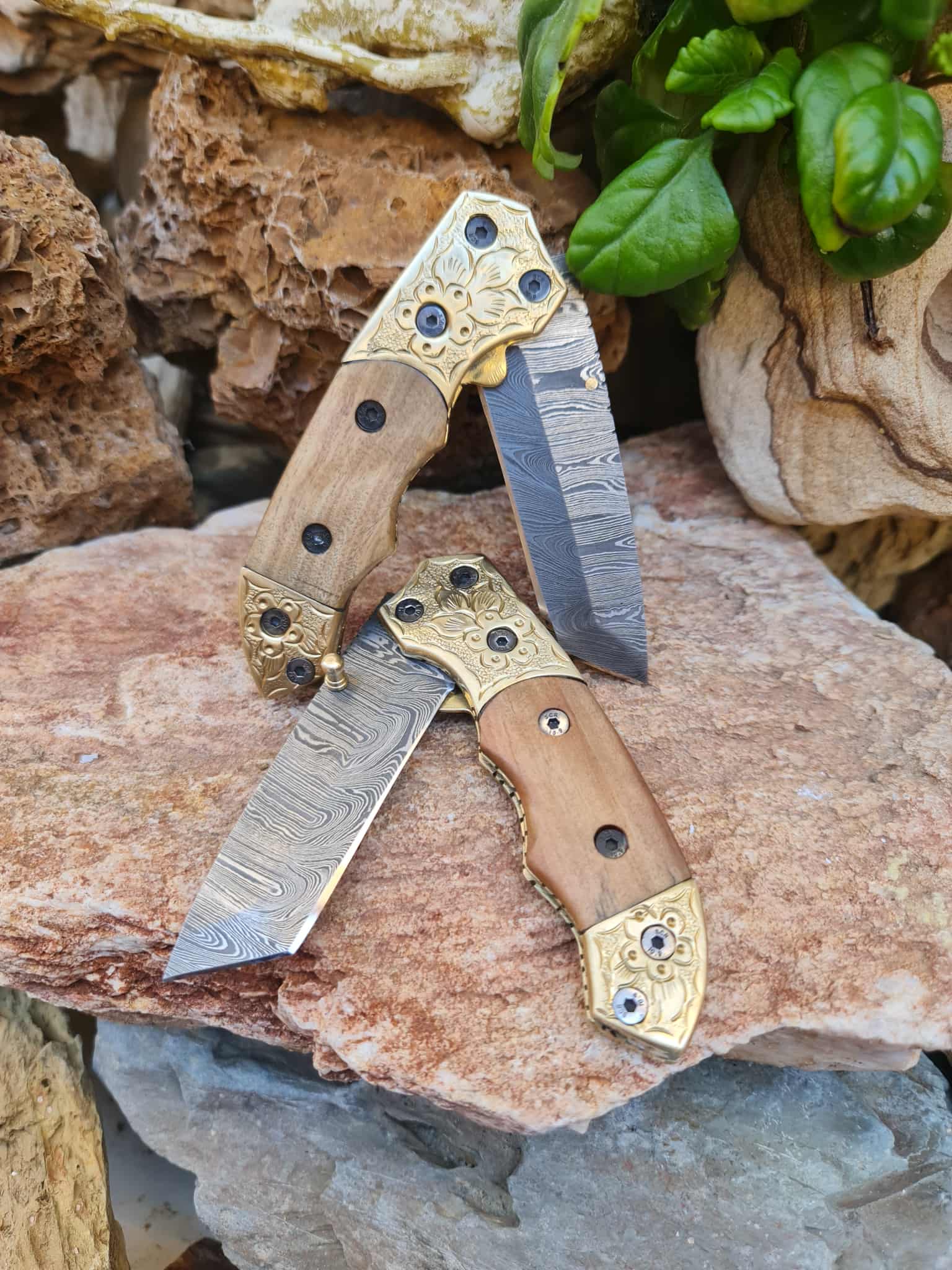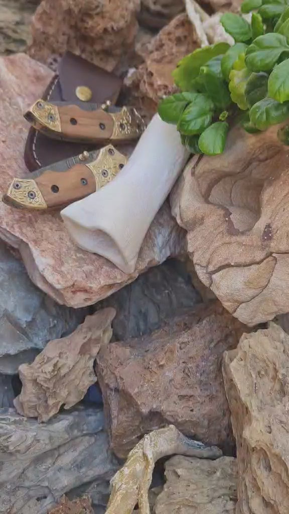 Handmade Limited Edition with Serial Number 19cm Knife with Damascus Steel - Olive wood & Hand Engraved Brass (Exclusive Knife with Serial Number)