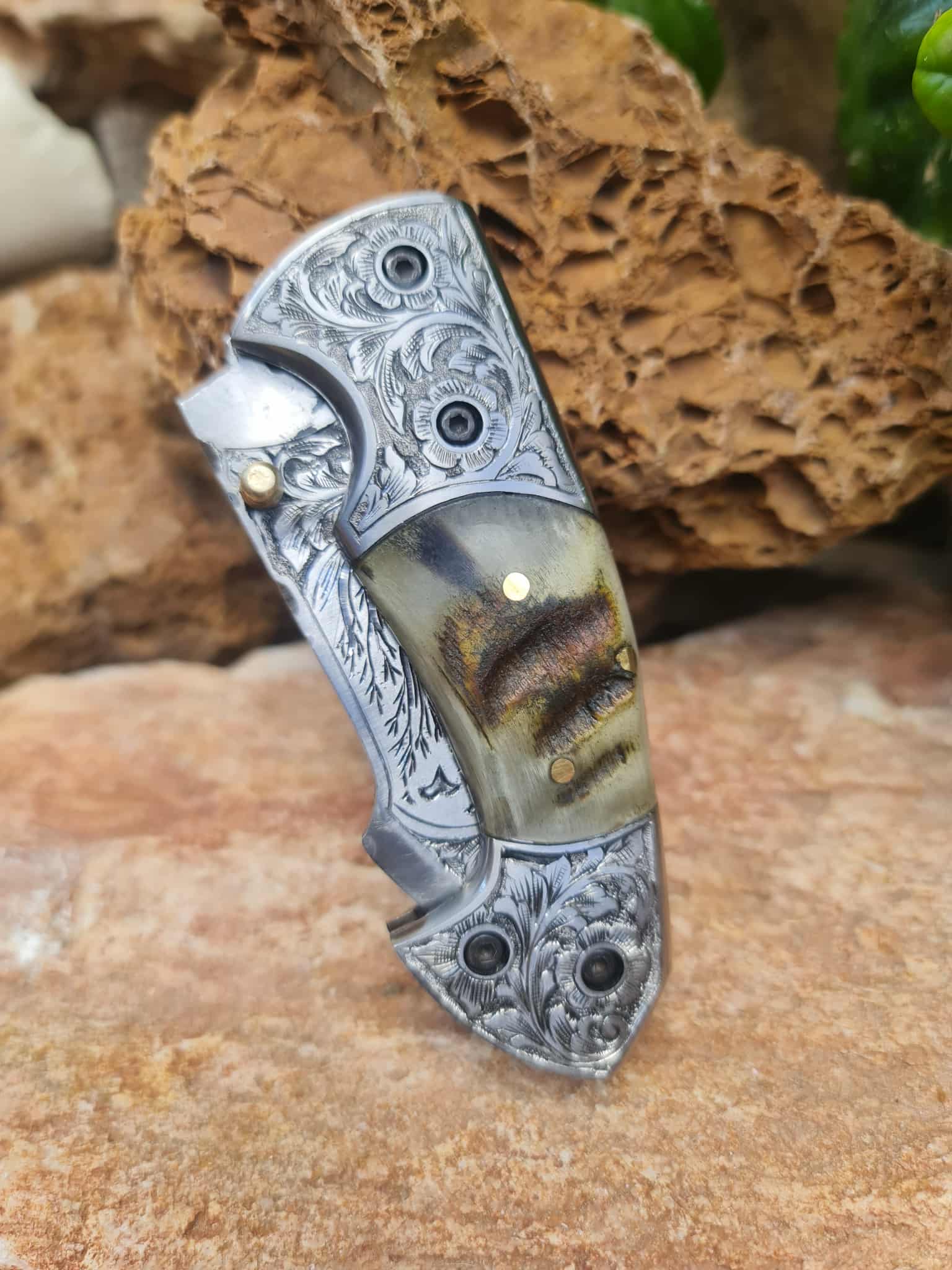 Handle Material: Asian Mouflon Horn & 420 Stainless Steel with Master Hand-Engraved