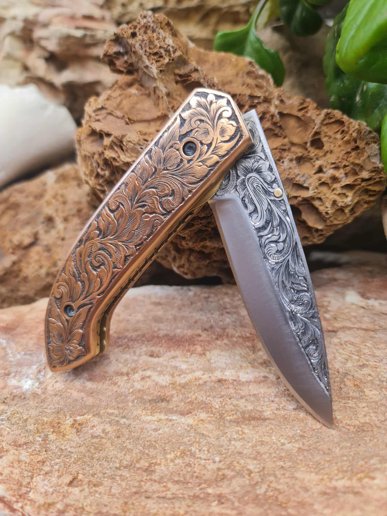 Handmade Limited Edition with Serial Number 21cm Knife with 420 Stainless Steel with Master Hand-Engraved & Cooper with Master Hand-Engraved