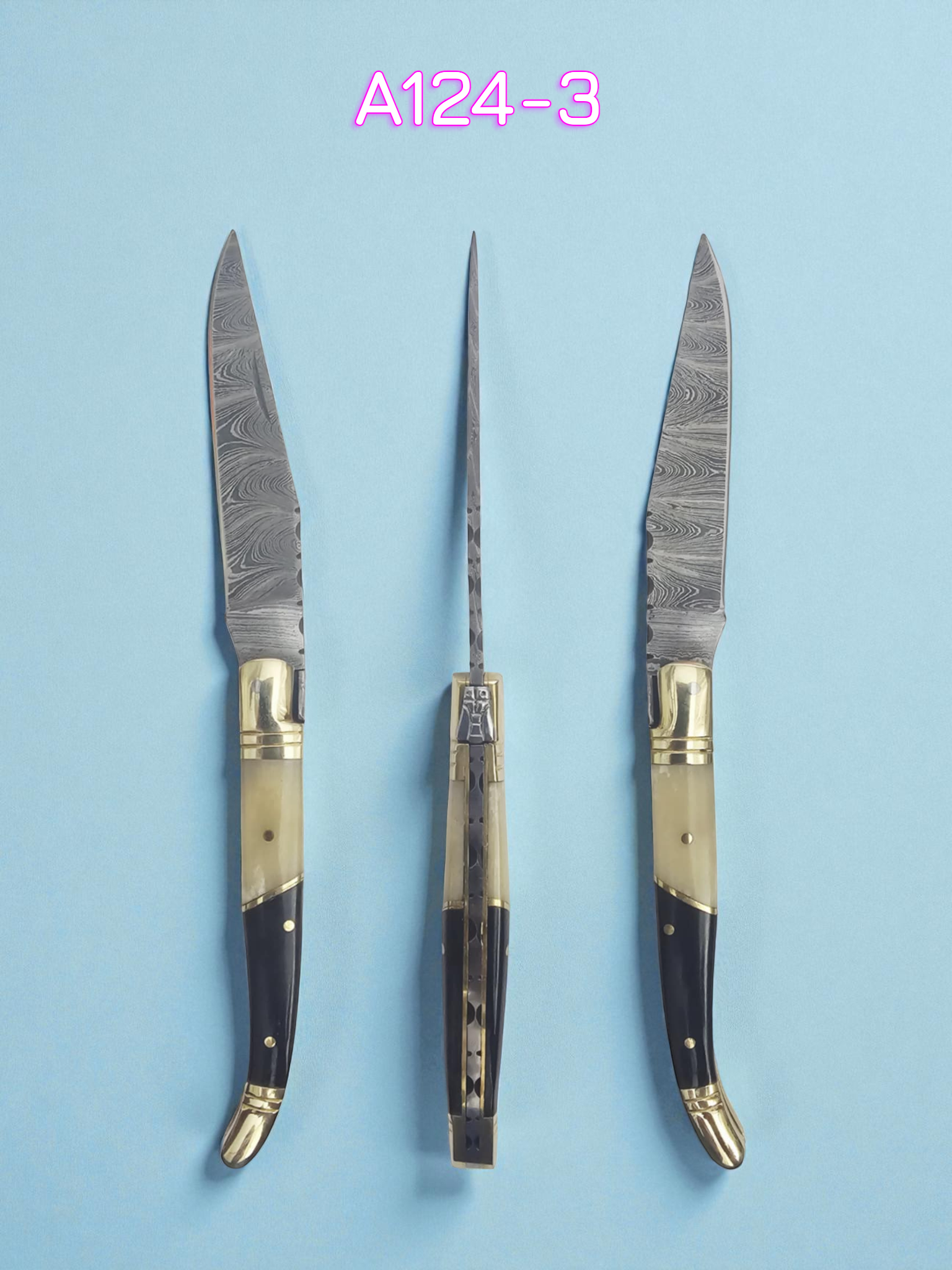 A124 Handmade Laguiole Classique - Damascus Steel - Buffalo Horn & Camel Bone