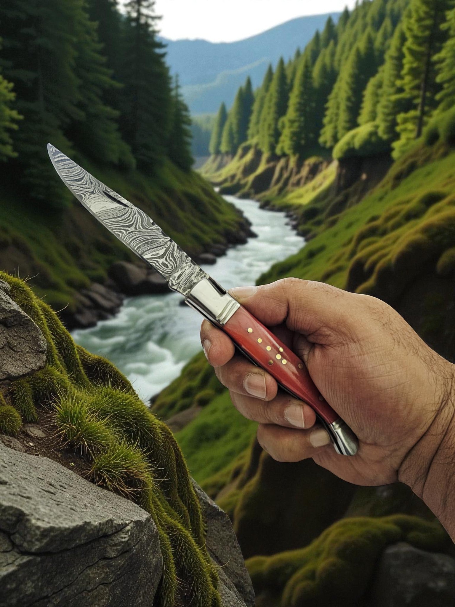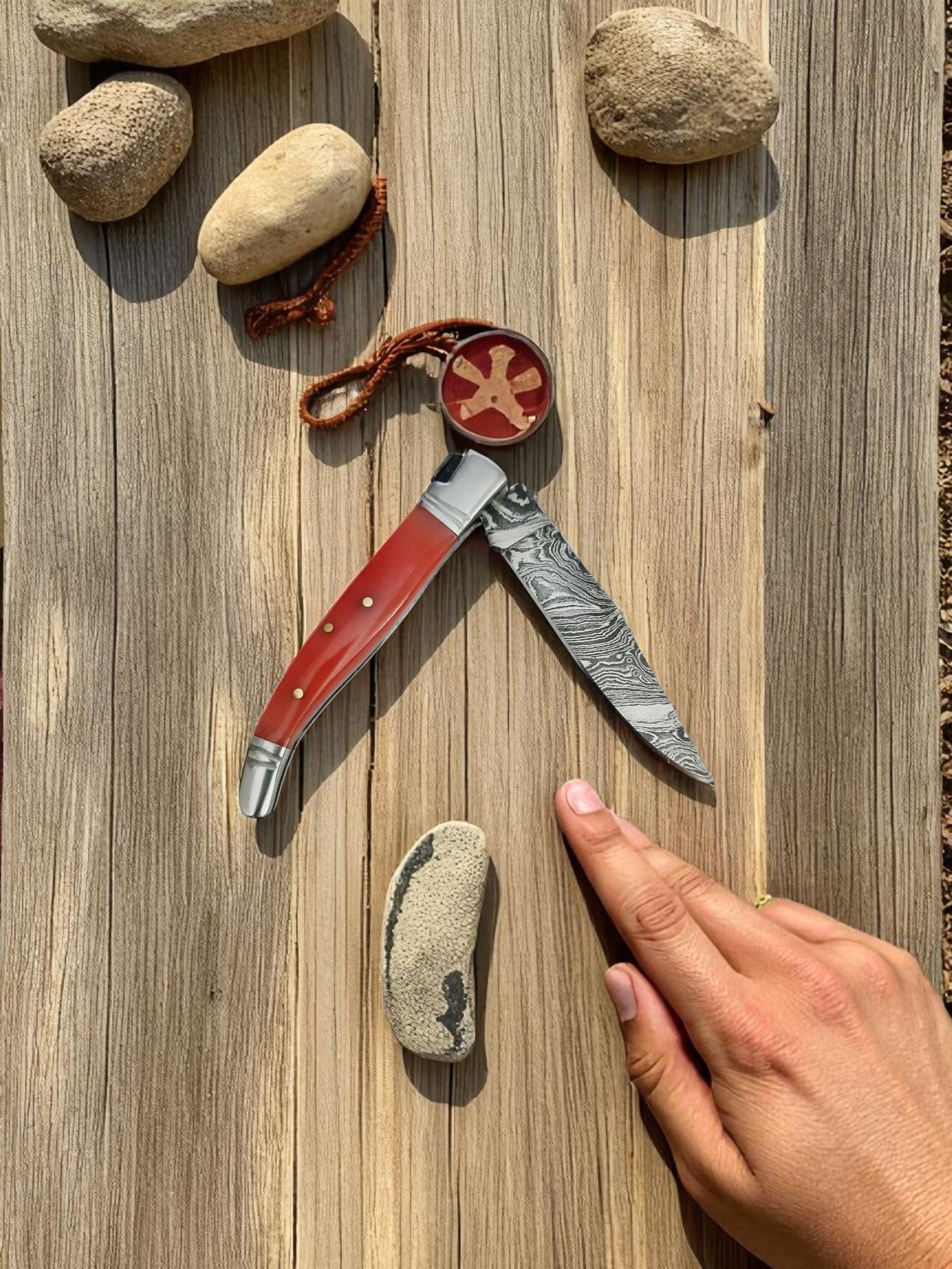 A143 Handmade Laguiole Rustique - Damascus Steel & Resin-Infused Camel Bone