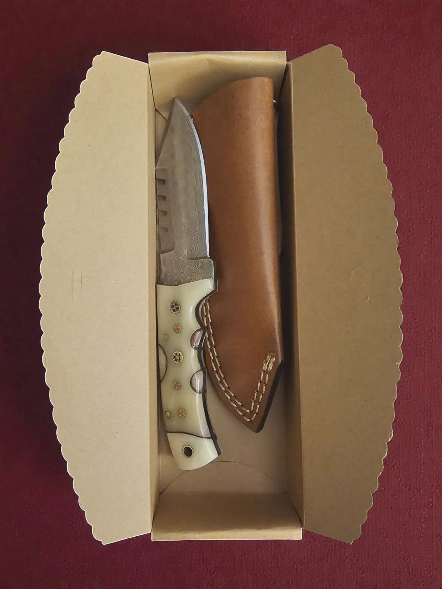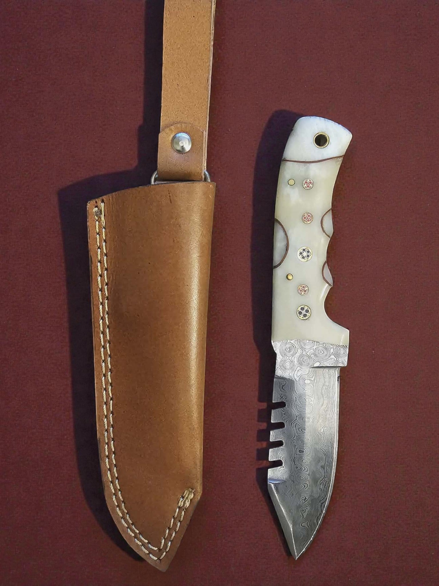 R011 - Χειροποίητο Hunting Knife από Δαμασκηνό ατσάλι & Κόκκαλο καμήλας