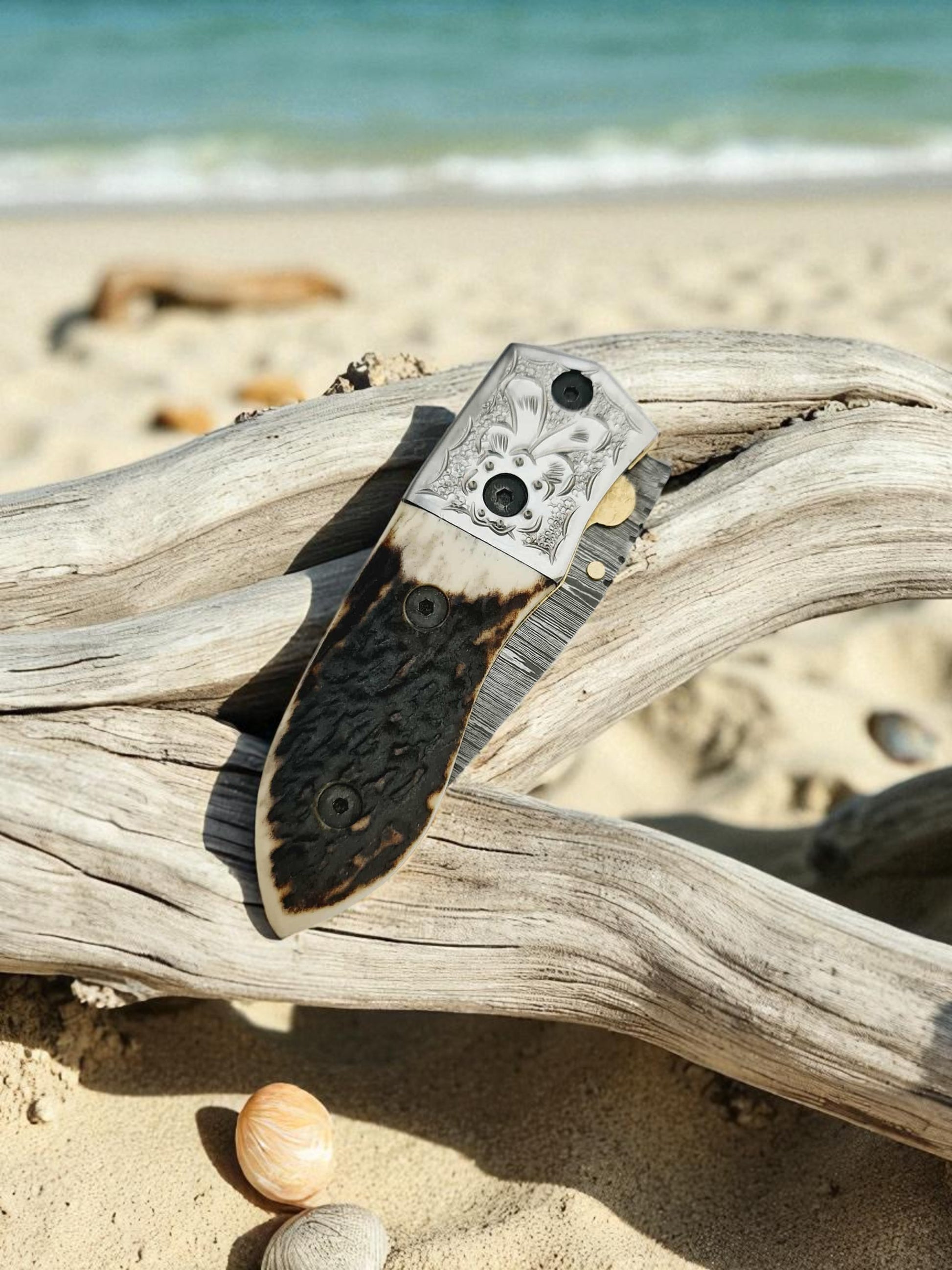 S109 Handmade Stalwart EDC - Damascus Steel & Red Deer Antler
