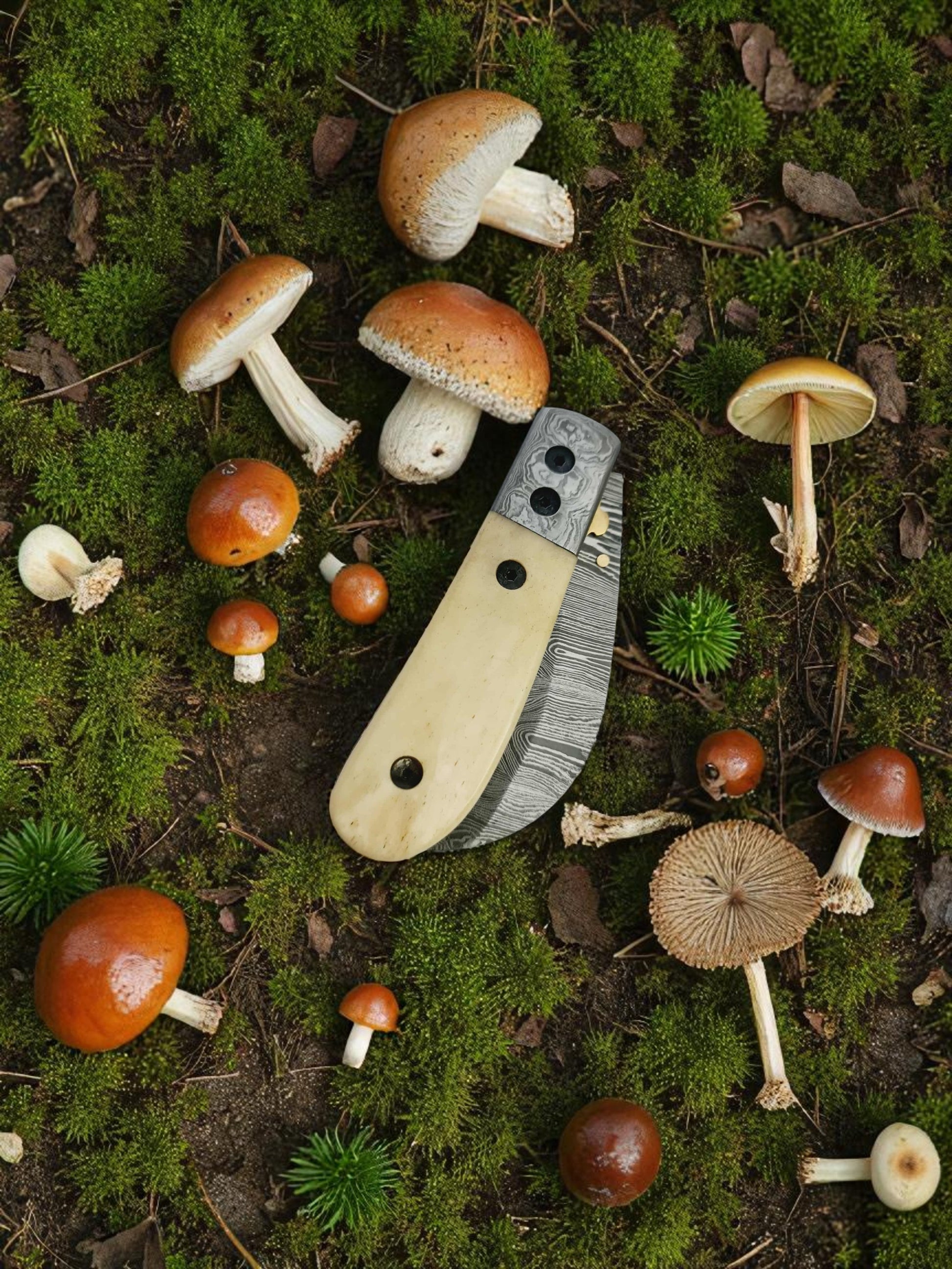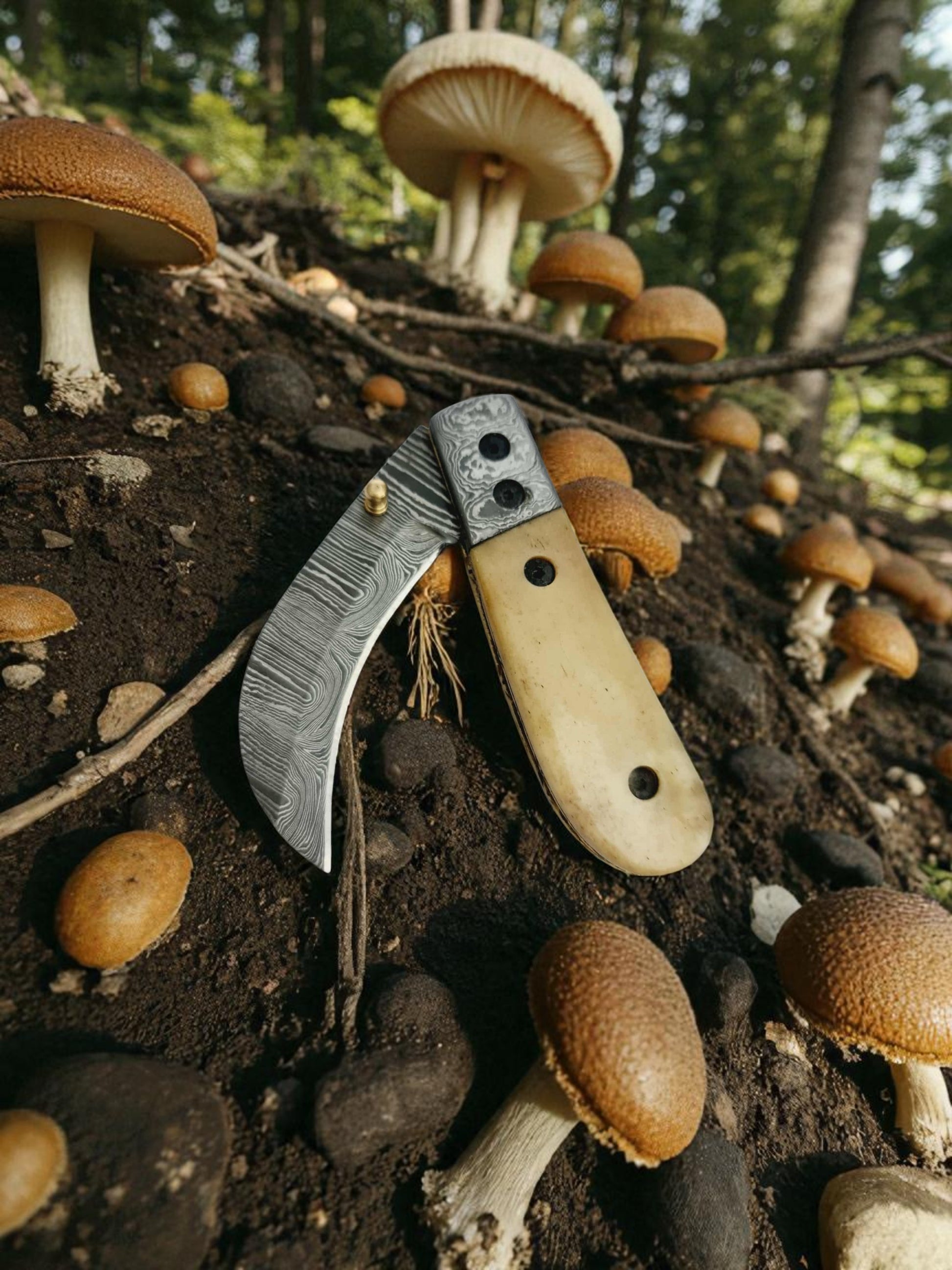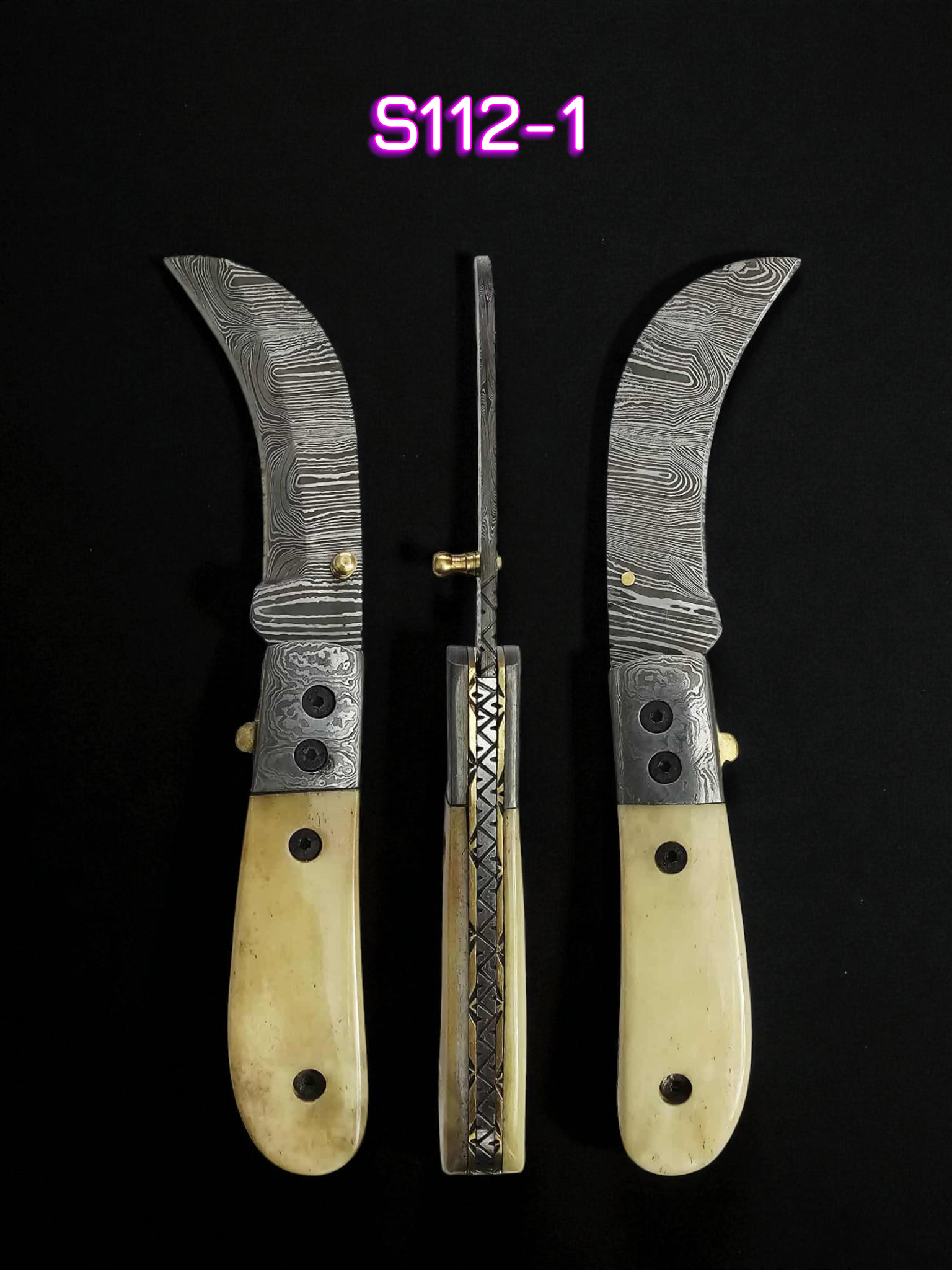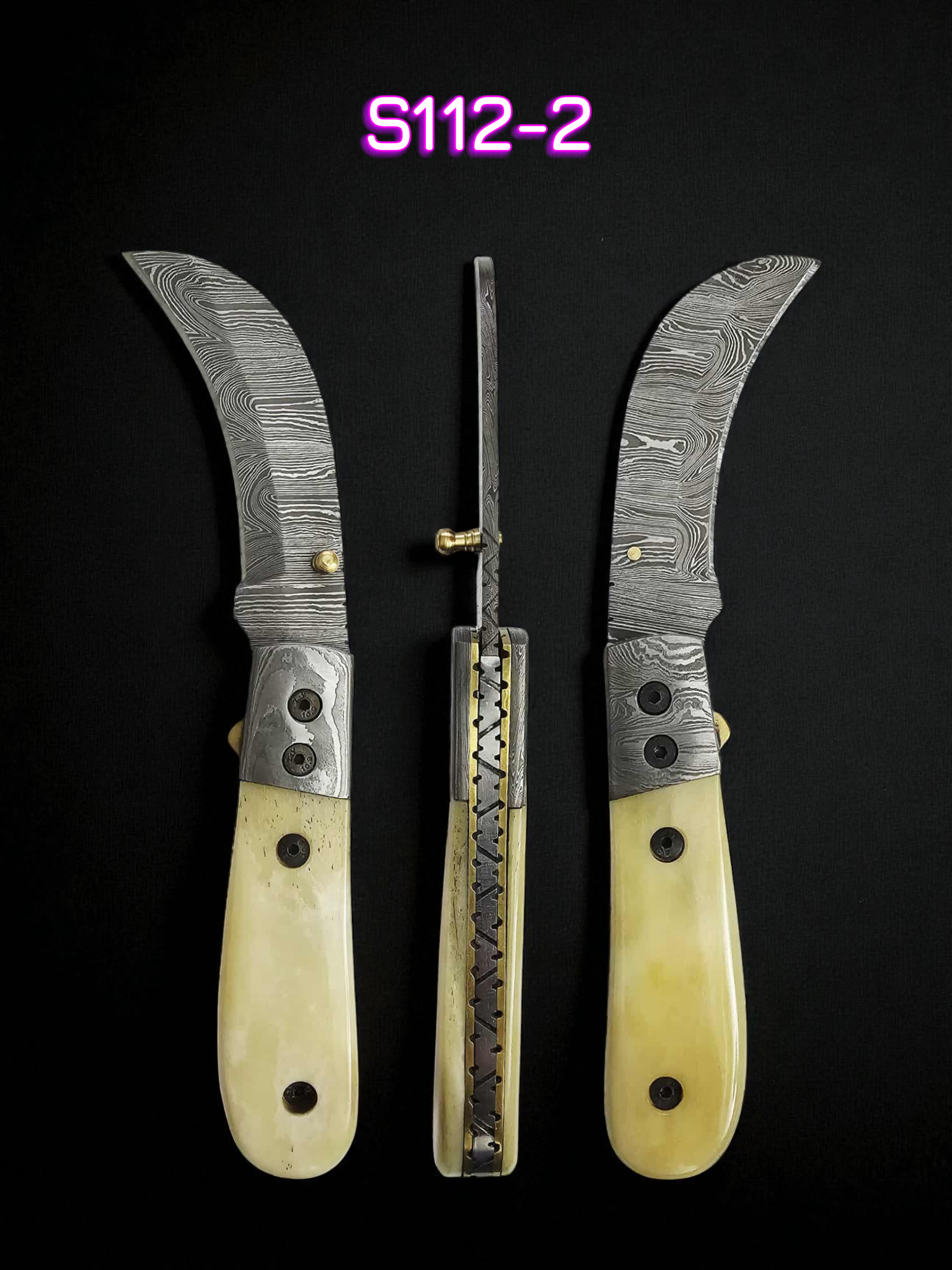 S112 Handmade Hawkbill EDC - Damascus Steel & Camel Bone