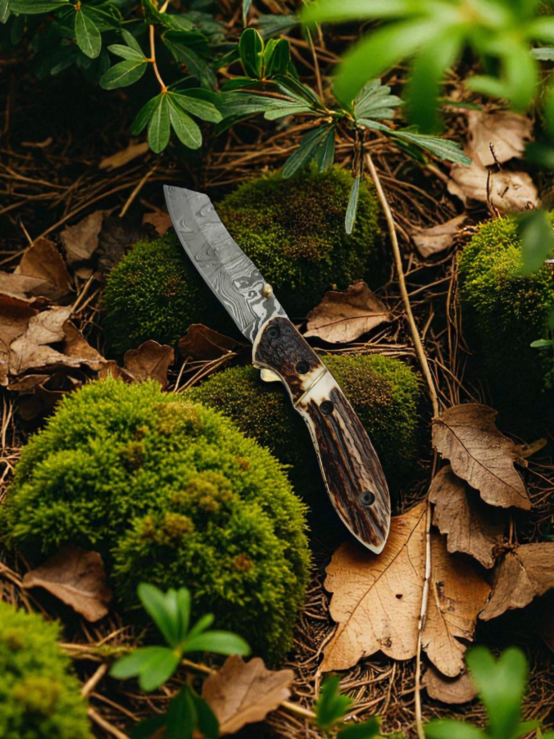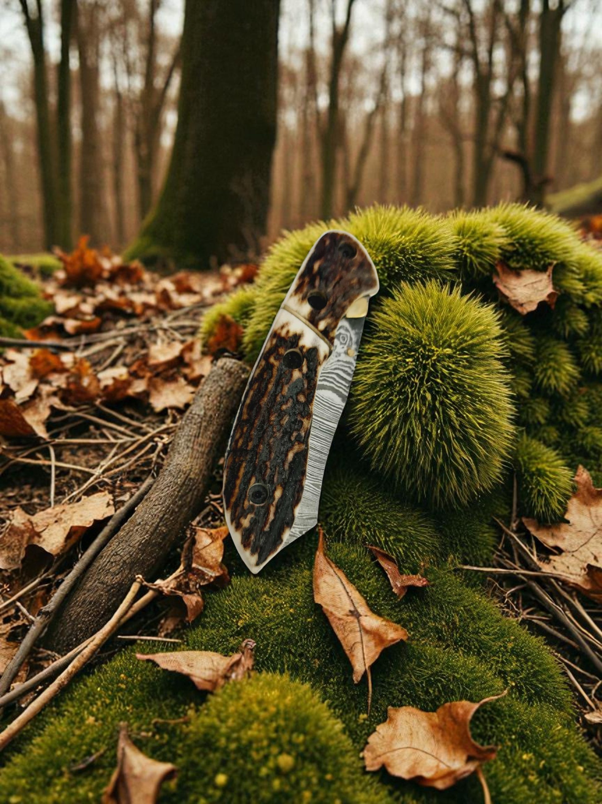 S167 Handmade DAO - EDC - Damascus Steel & Red Deer Antler