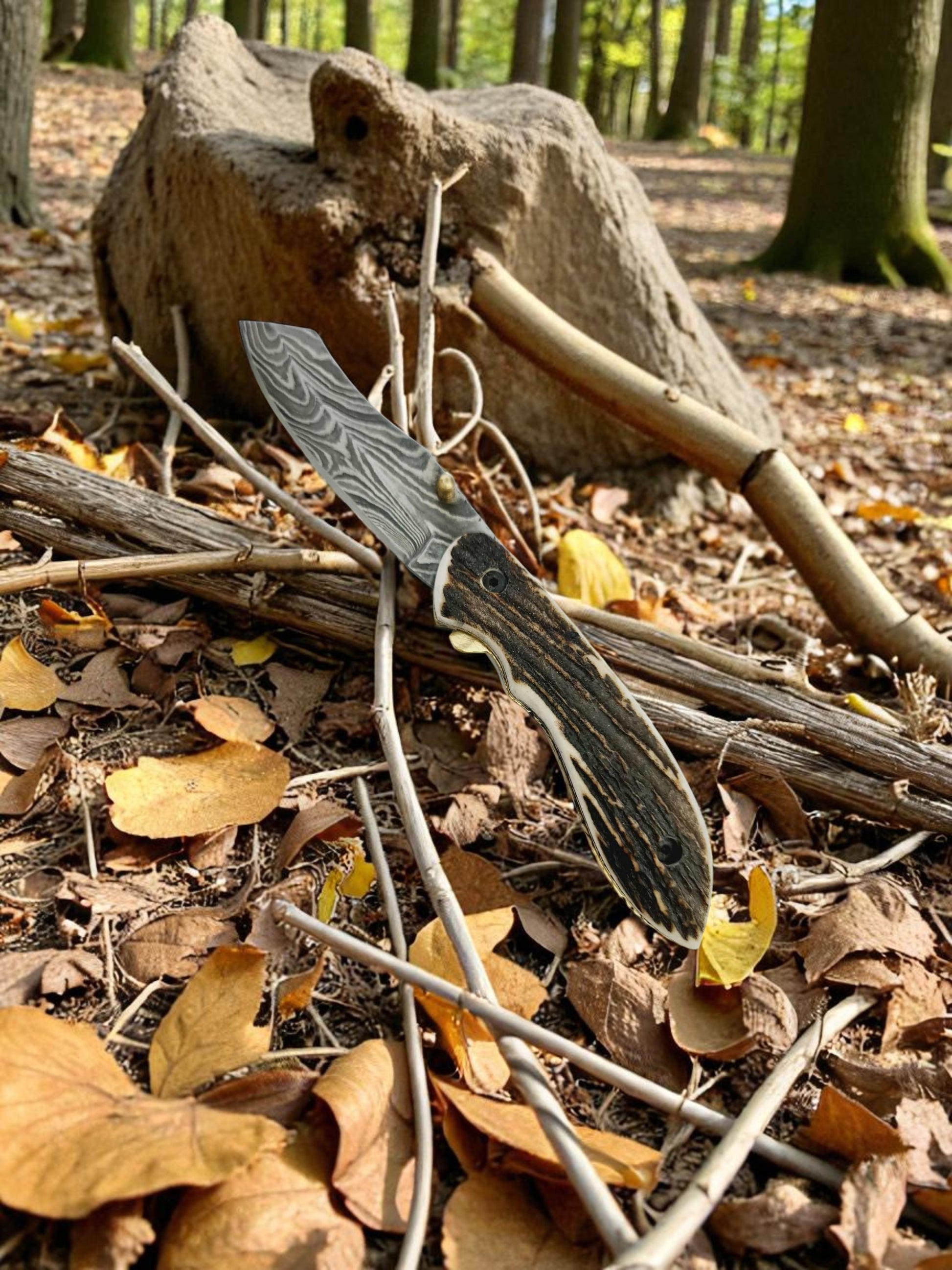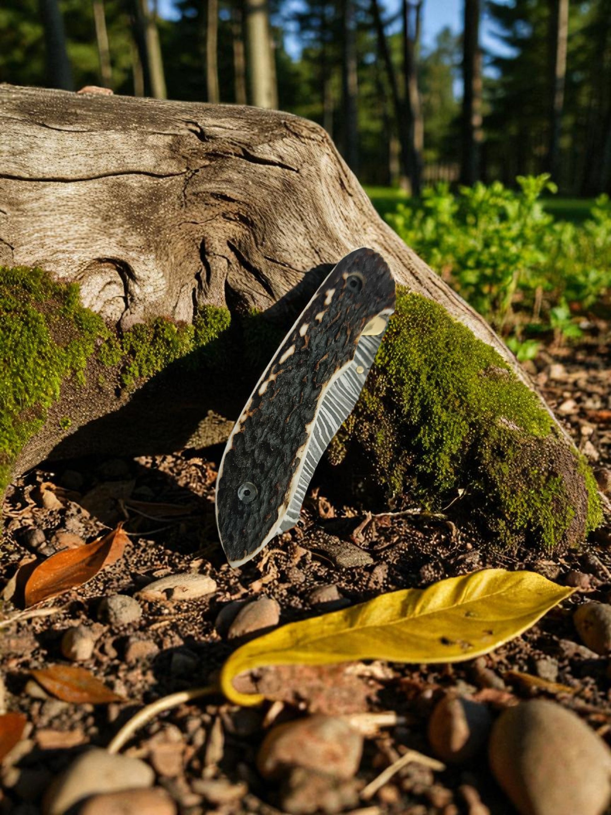 S168 Handmade DAO - EDC - Damascus Steel & Red Deer Antler