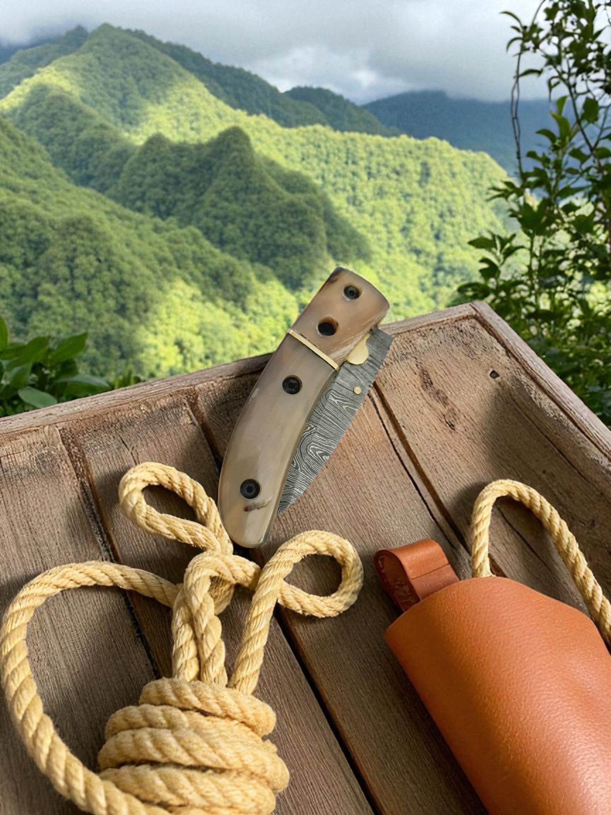 S169 Handmade Stalwart EDC - Damascus Steel & African Buffalo Horn