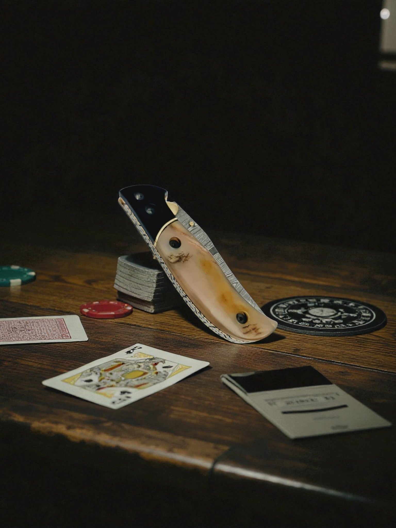 S170 Handmade Stalwart EDC - Damascus Steel & Polished Ram Horn